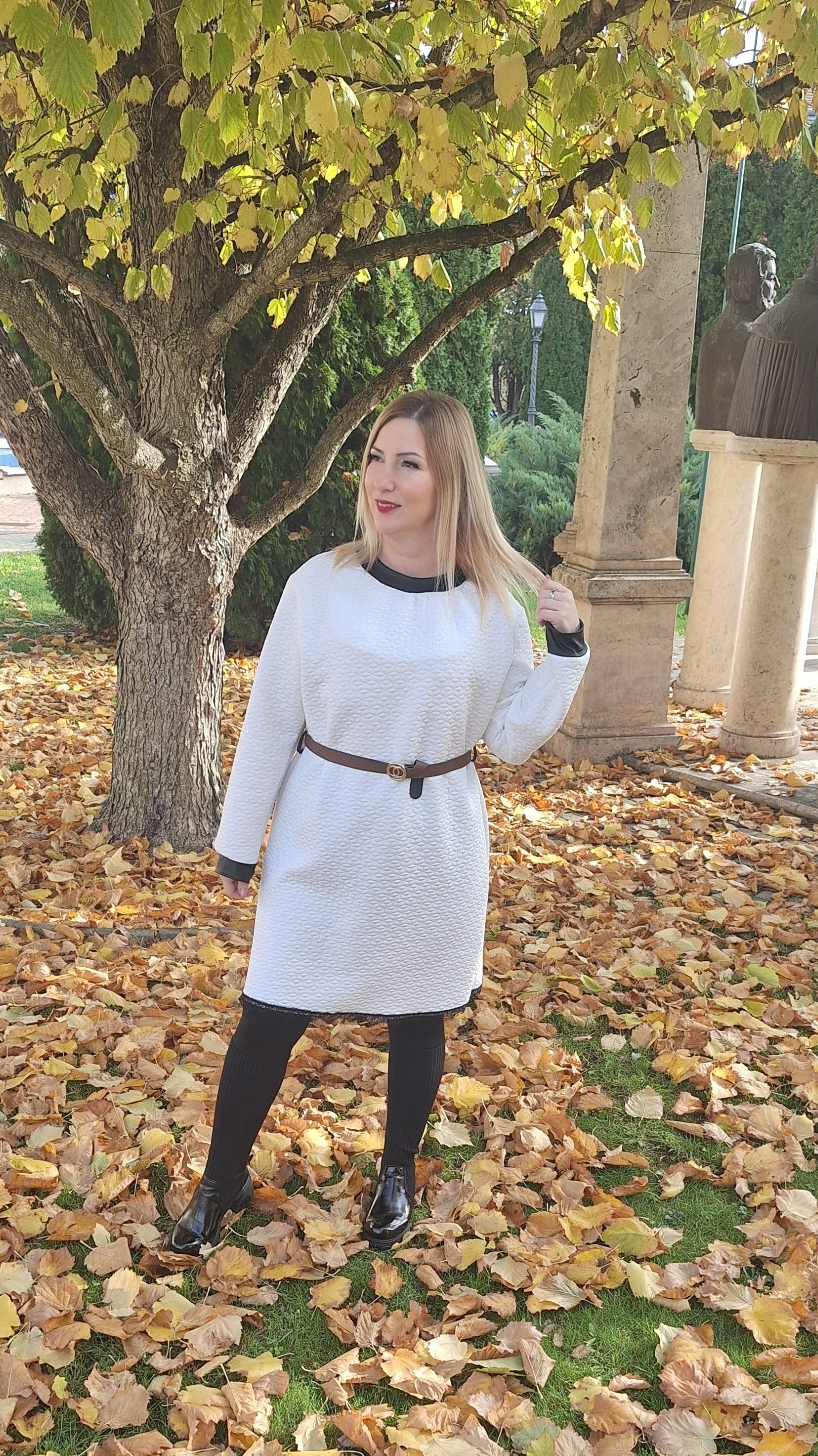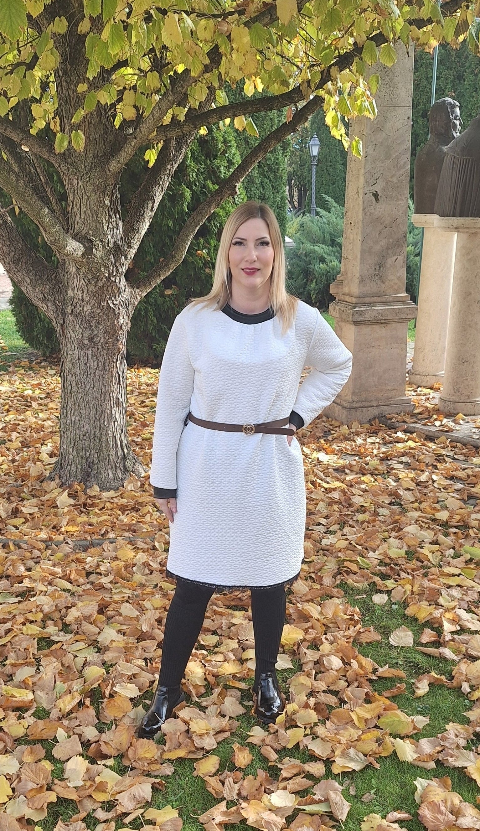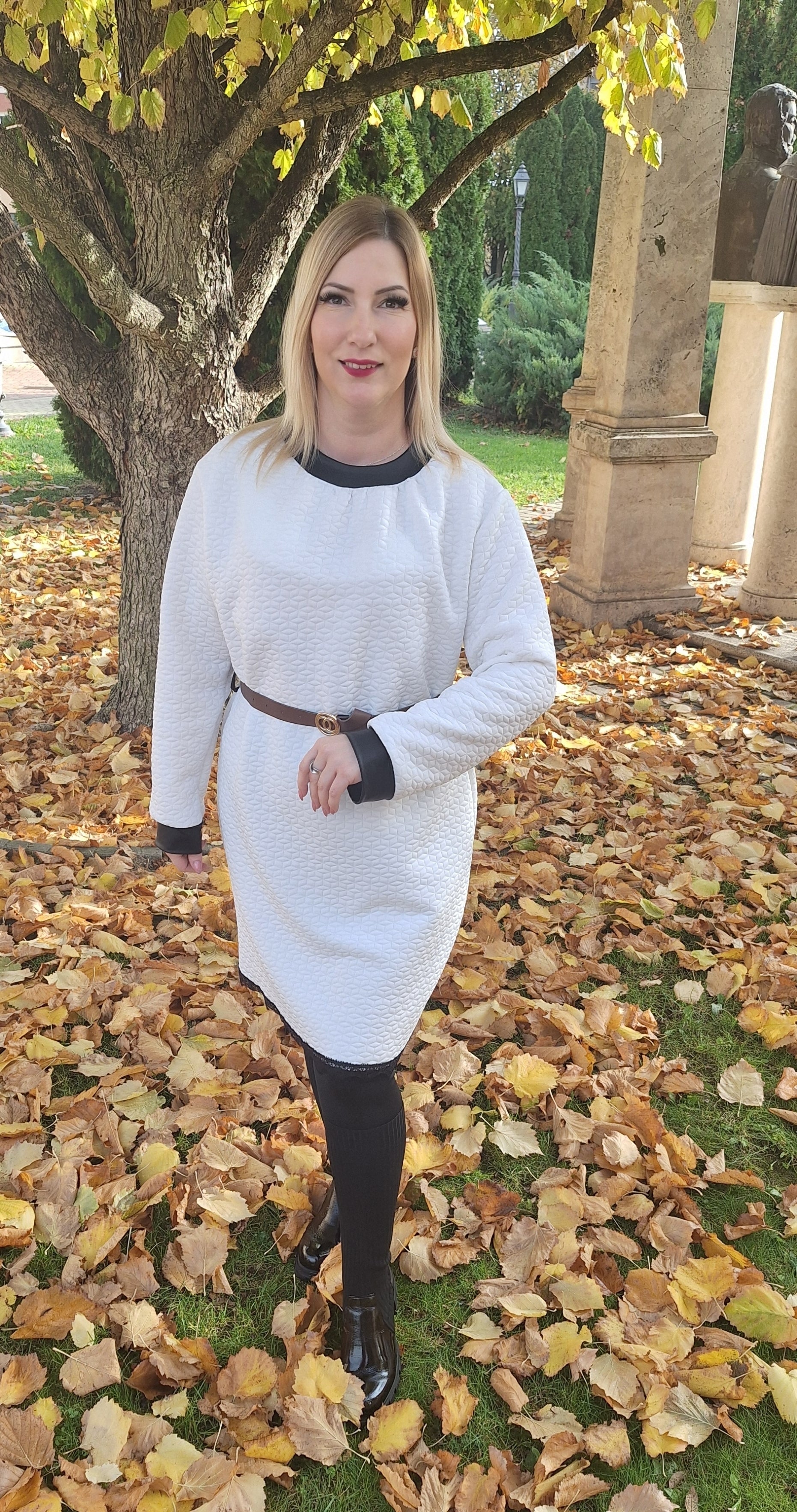 Anyagában mintás, öves ruha! Nyakán és újján passzés rész. Alja csipkés! Egyméretes S-xl-ig