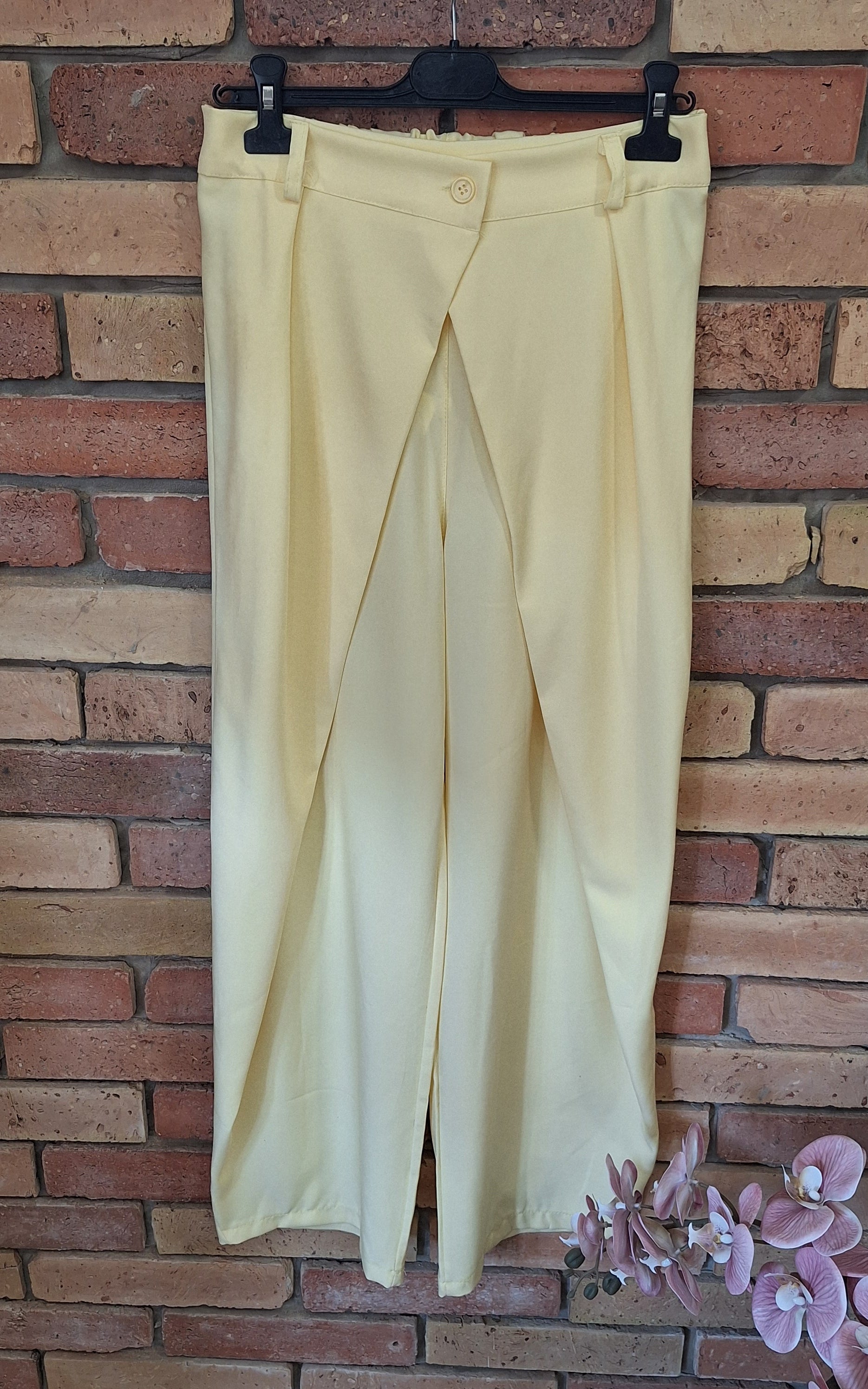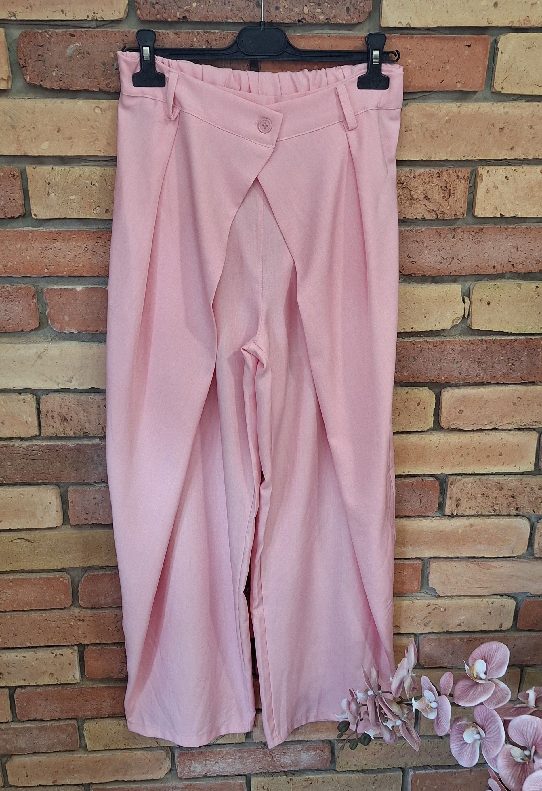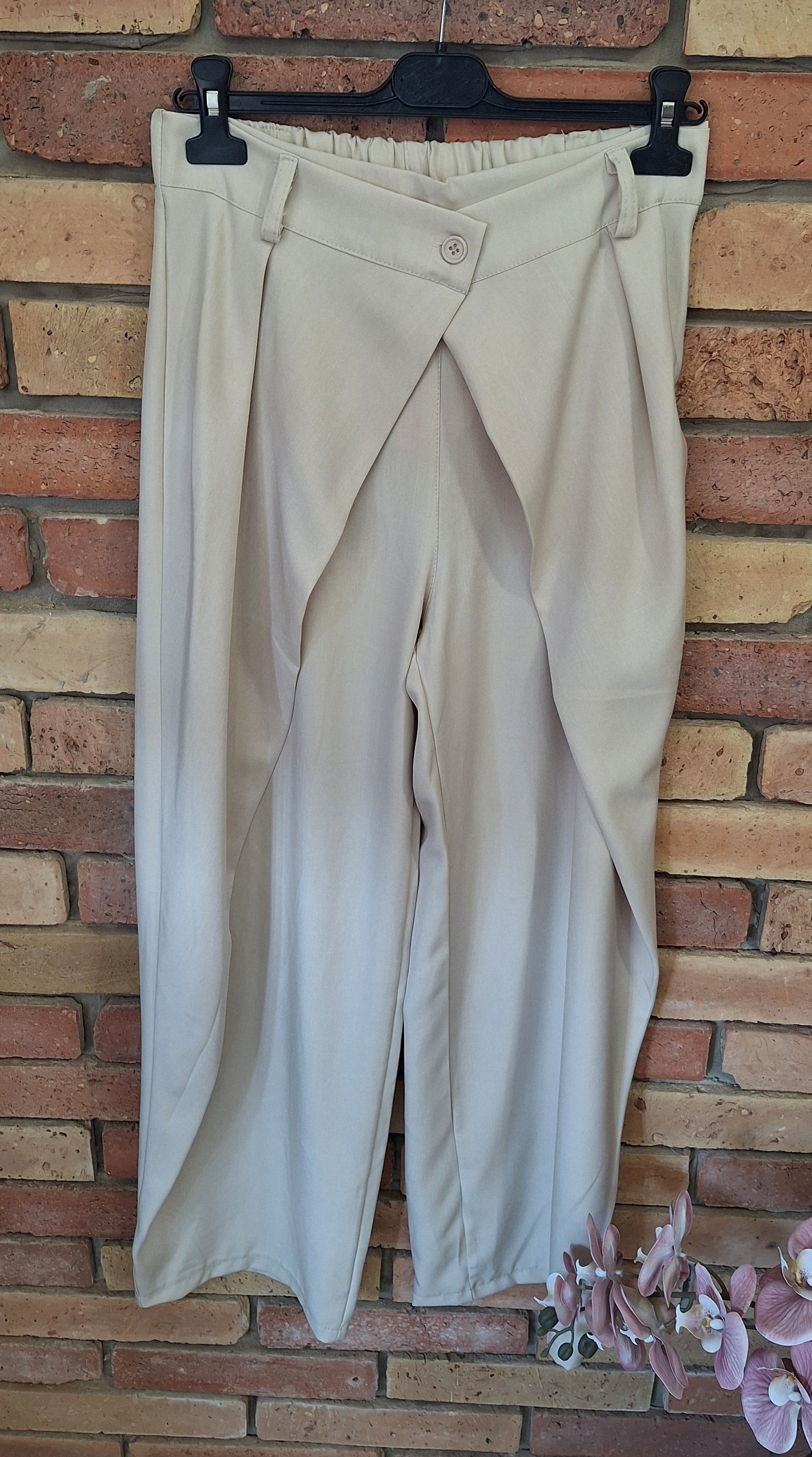 Csinos átlapolt , trendi nadrág! Gumis derekú. Középen egy gombbal. Egyméretes S-l