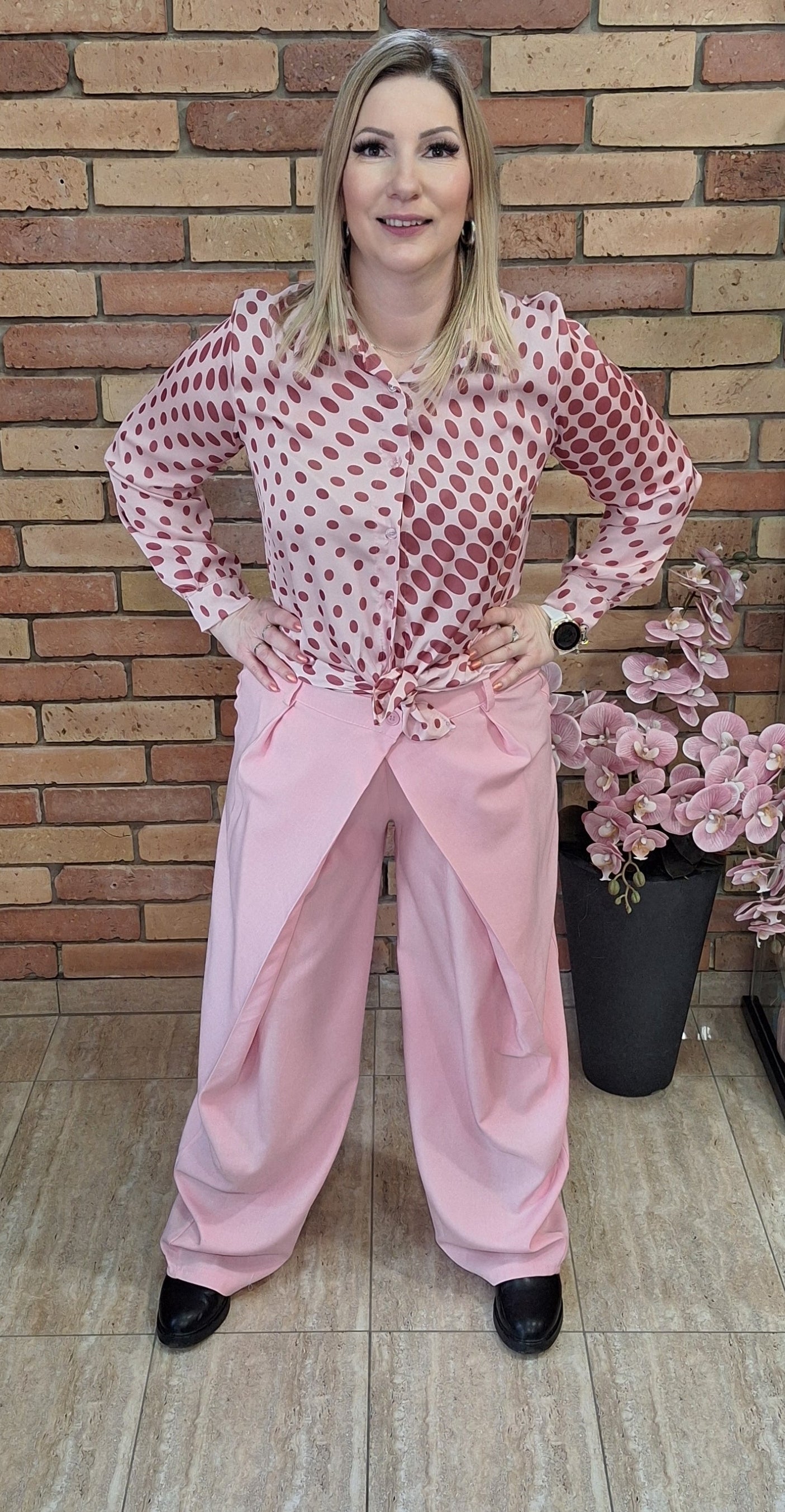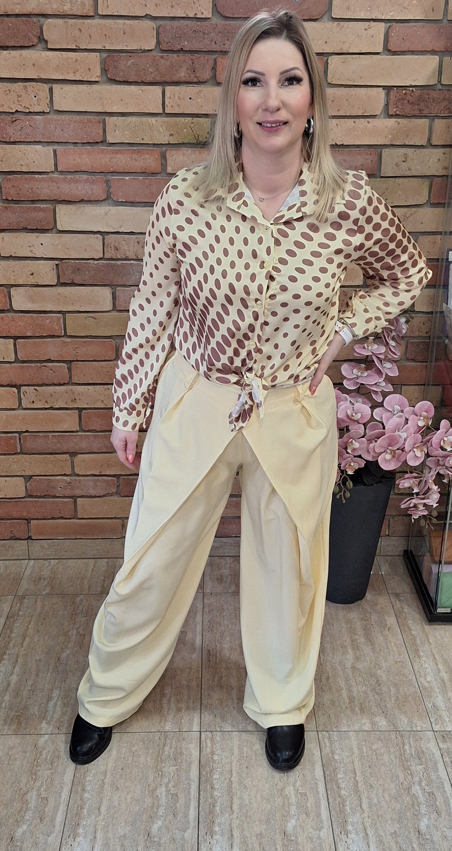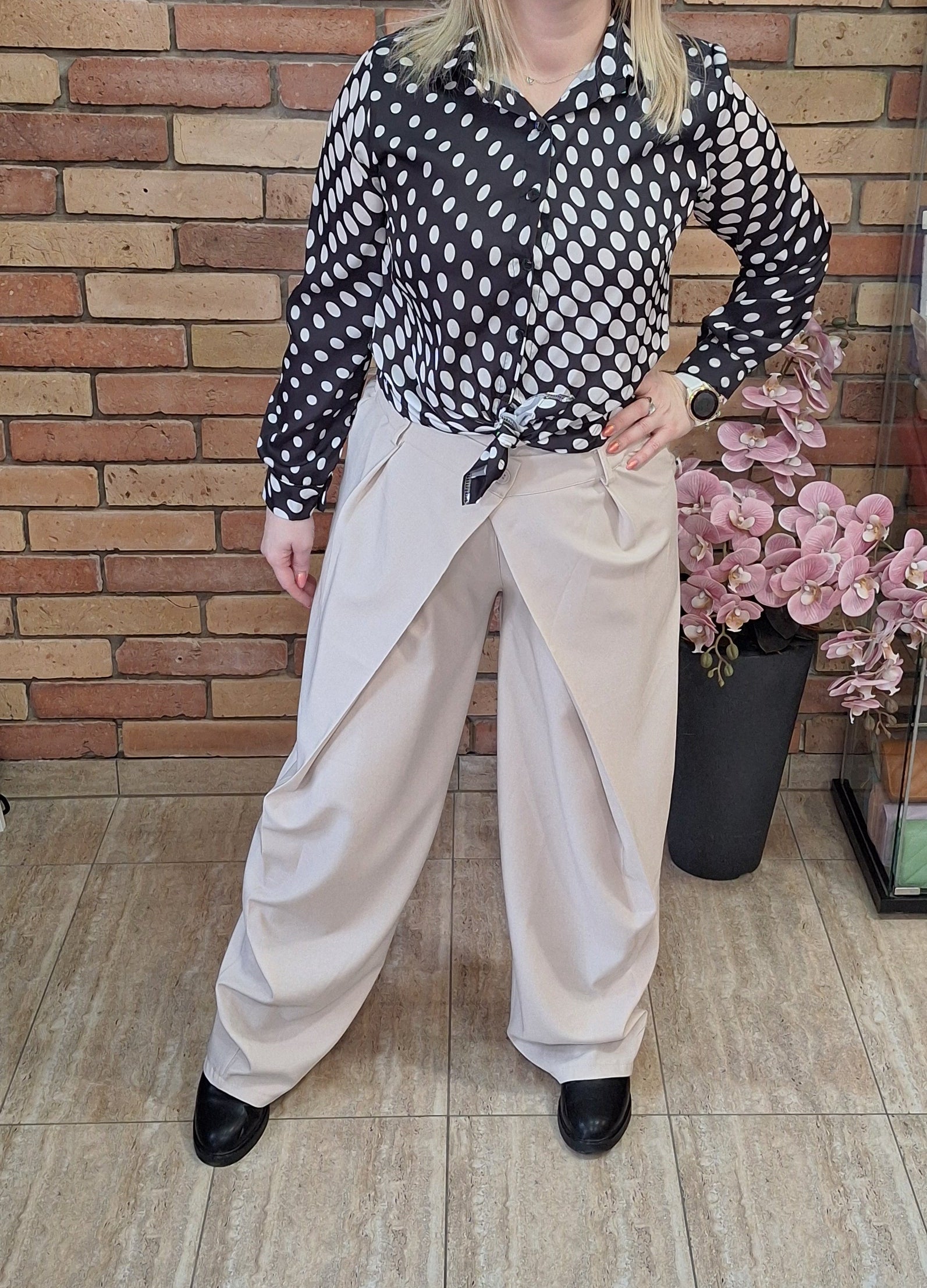 Csinos átlapolt , trendi nadrág! Gumis derekú. Középen egy gombbal. Egyméretes S-l