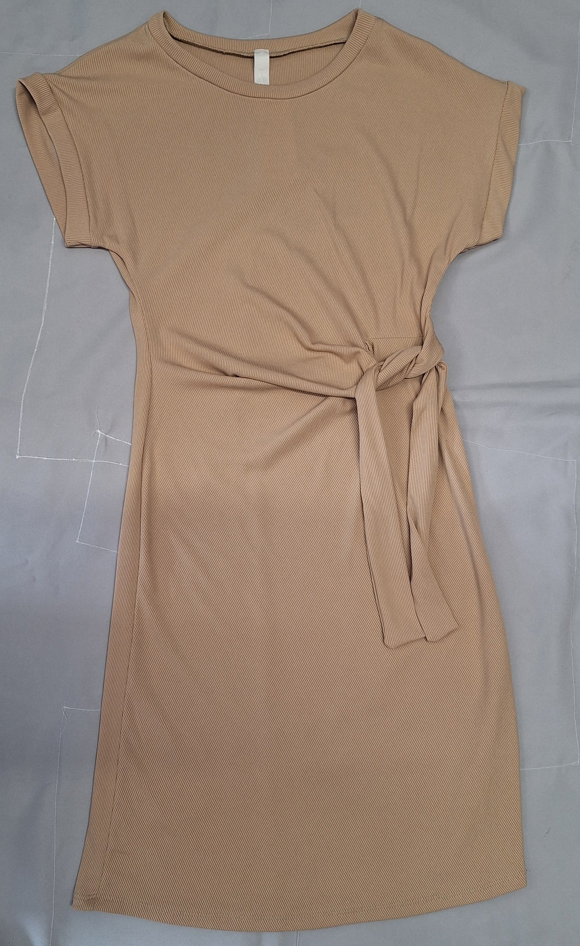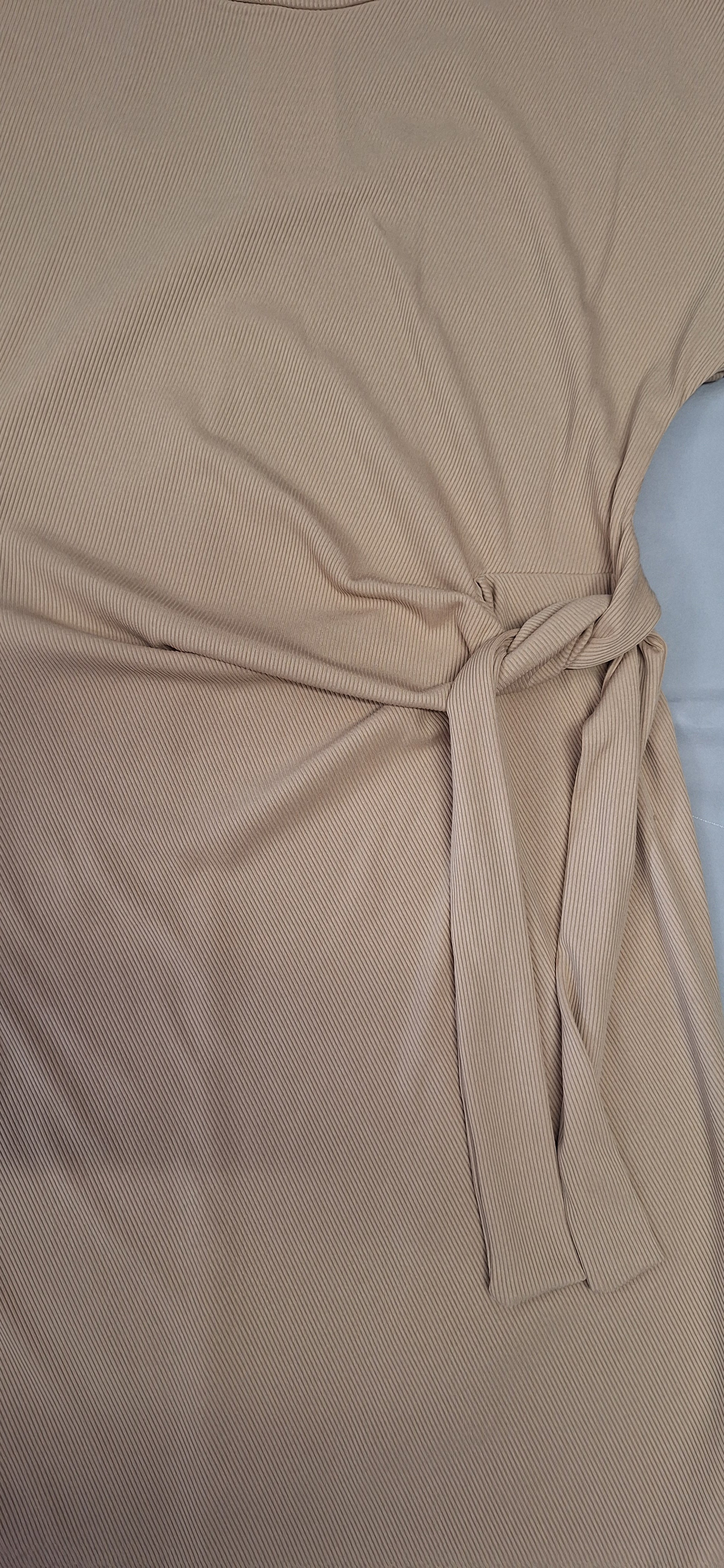 Nagyon csinos rugalmas anyagú ruha. Oldalán megkötővel így karcsúsíthato a derék. Egyméretes S-l