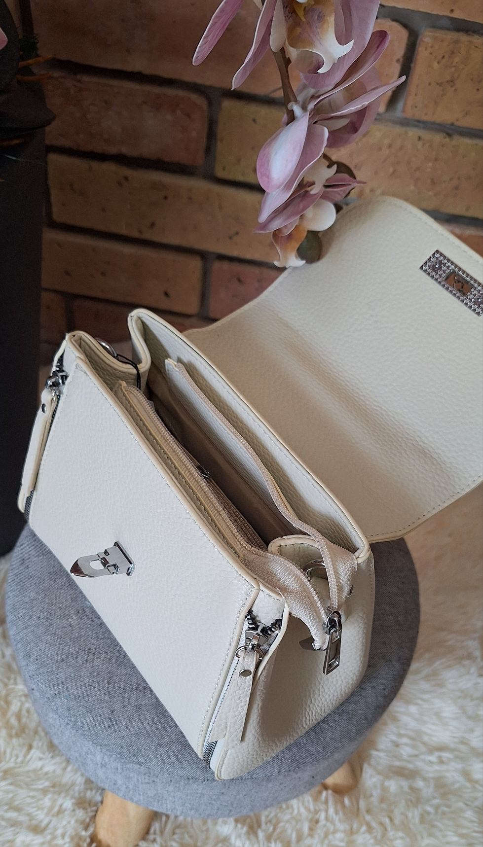 Gyönyörű krém kézitáska, válltáska! Tartozik egy hosszú pánt hozzá!