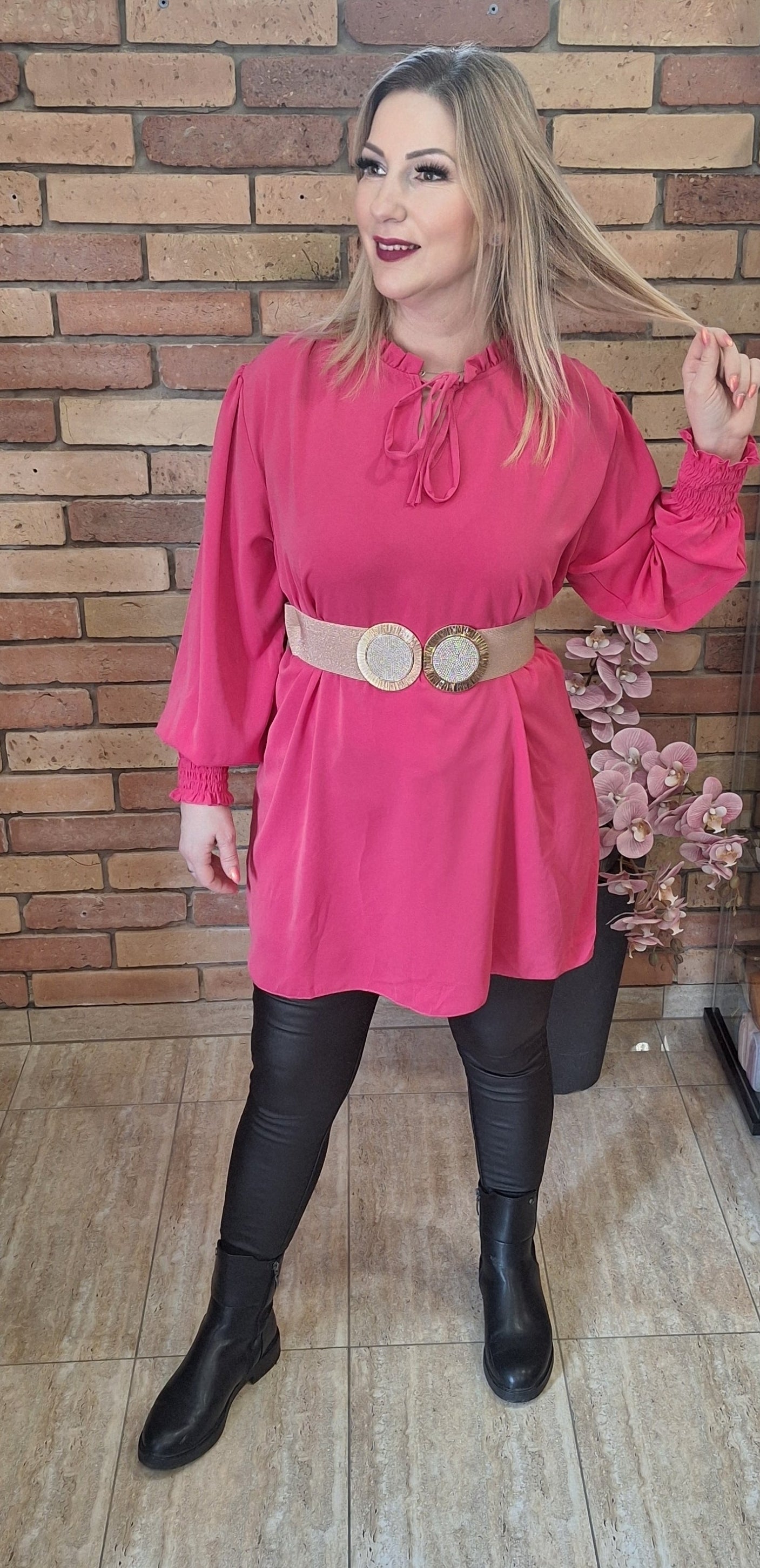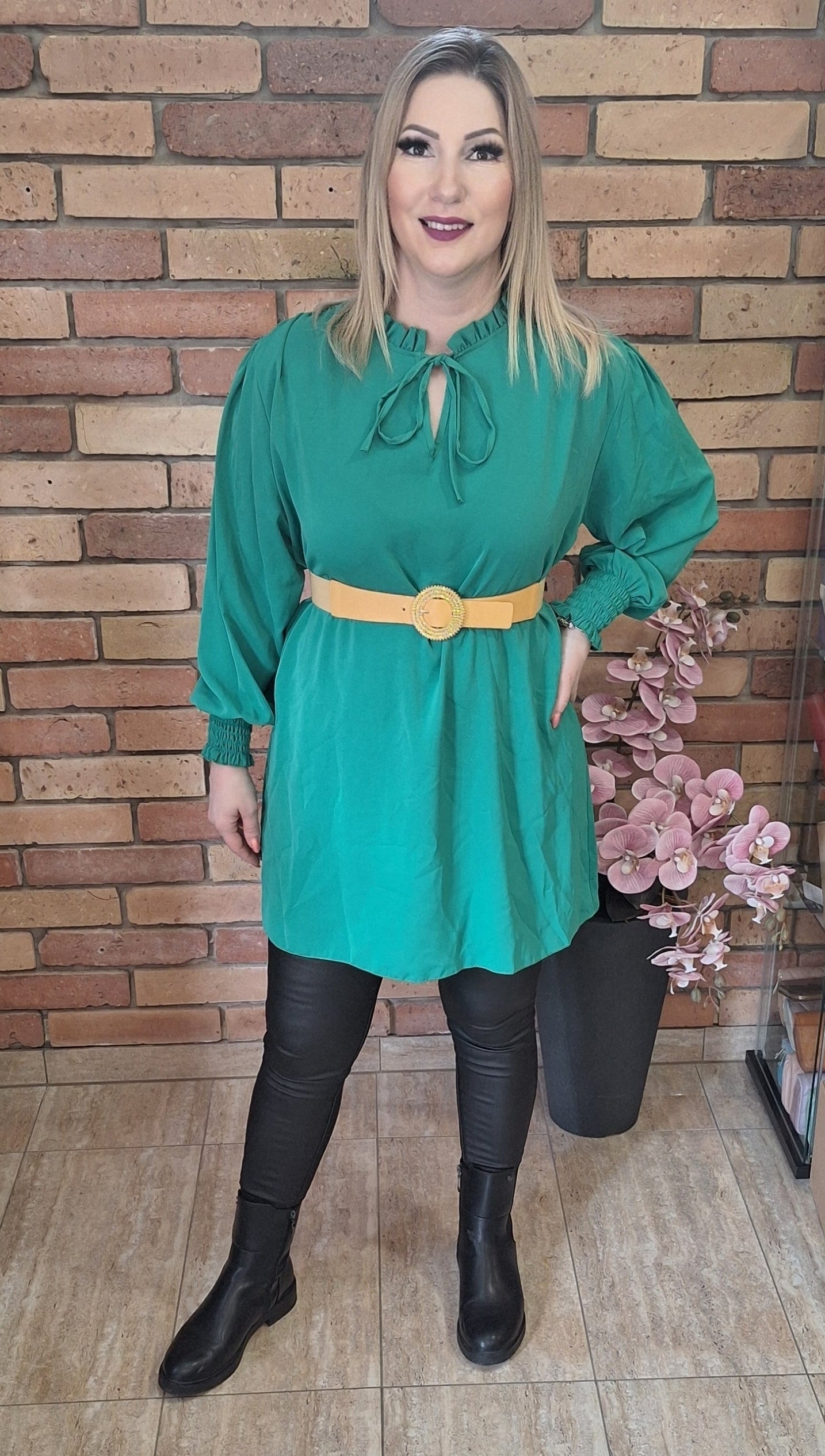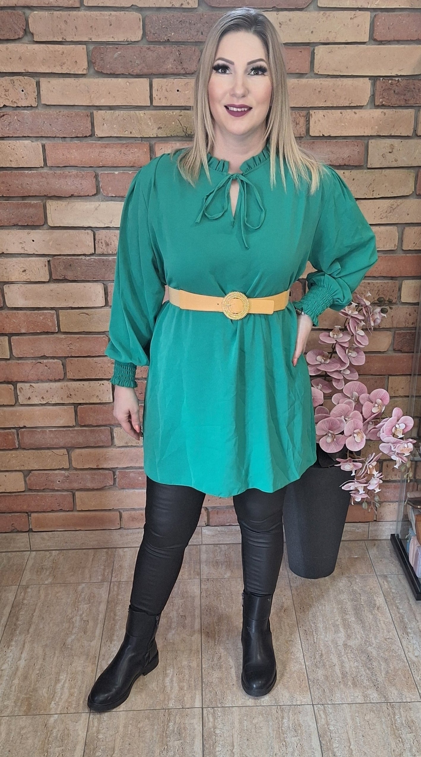 Csinos, fodros nyakú blúz. Ujja ráncolt. Hosszított, egyméretes S-kisebb Xl-ig