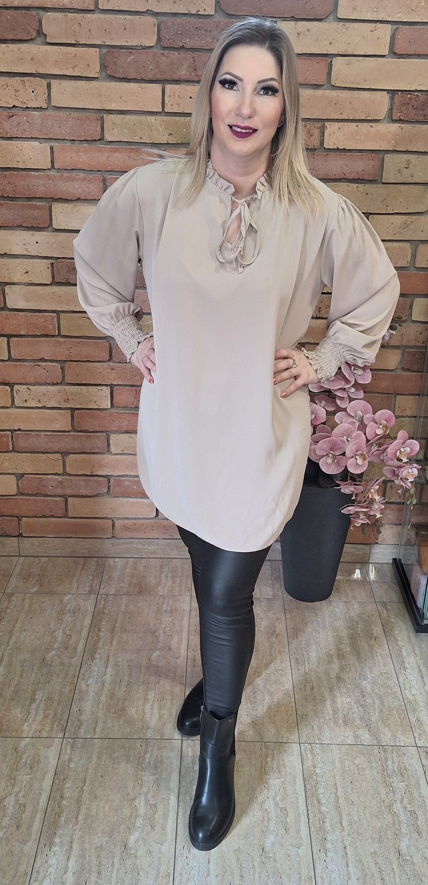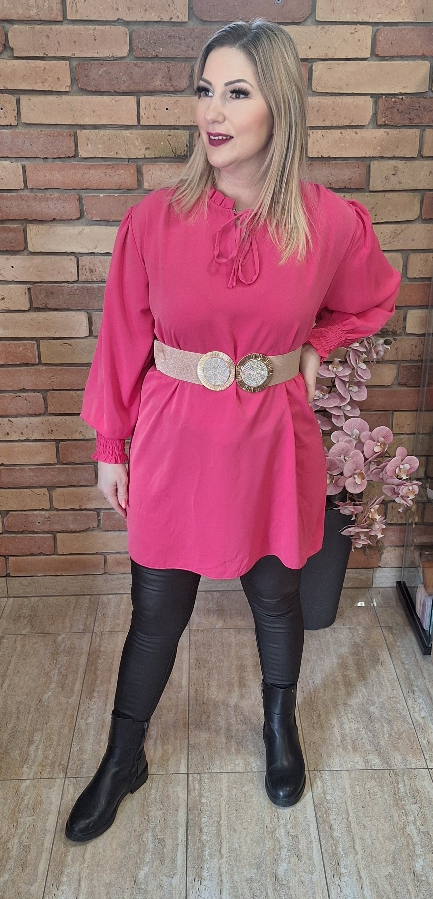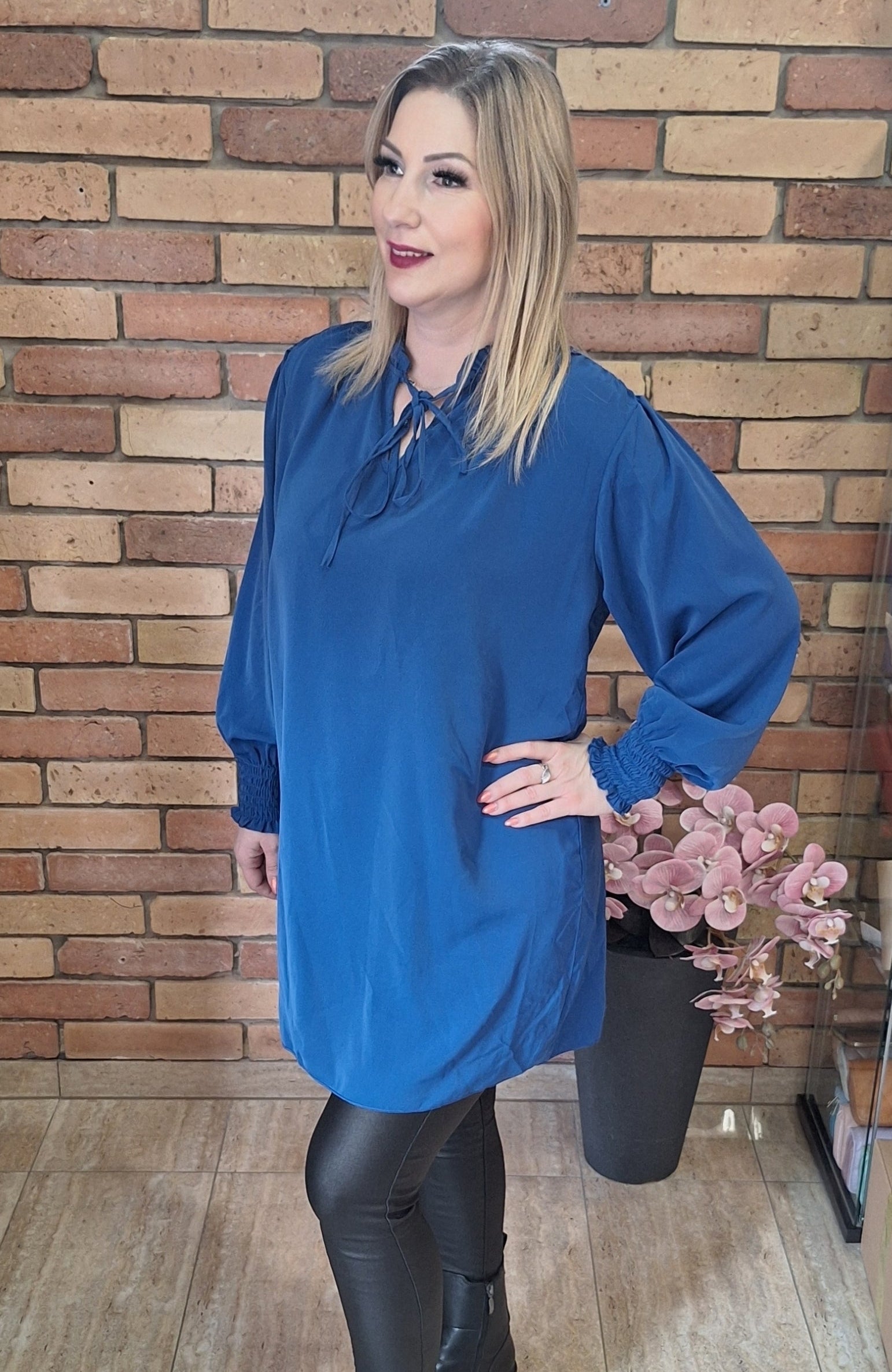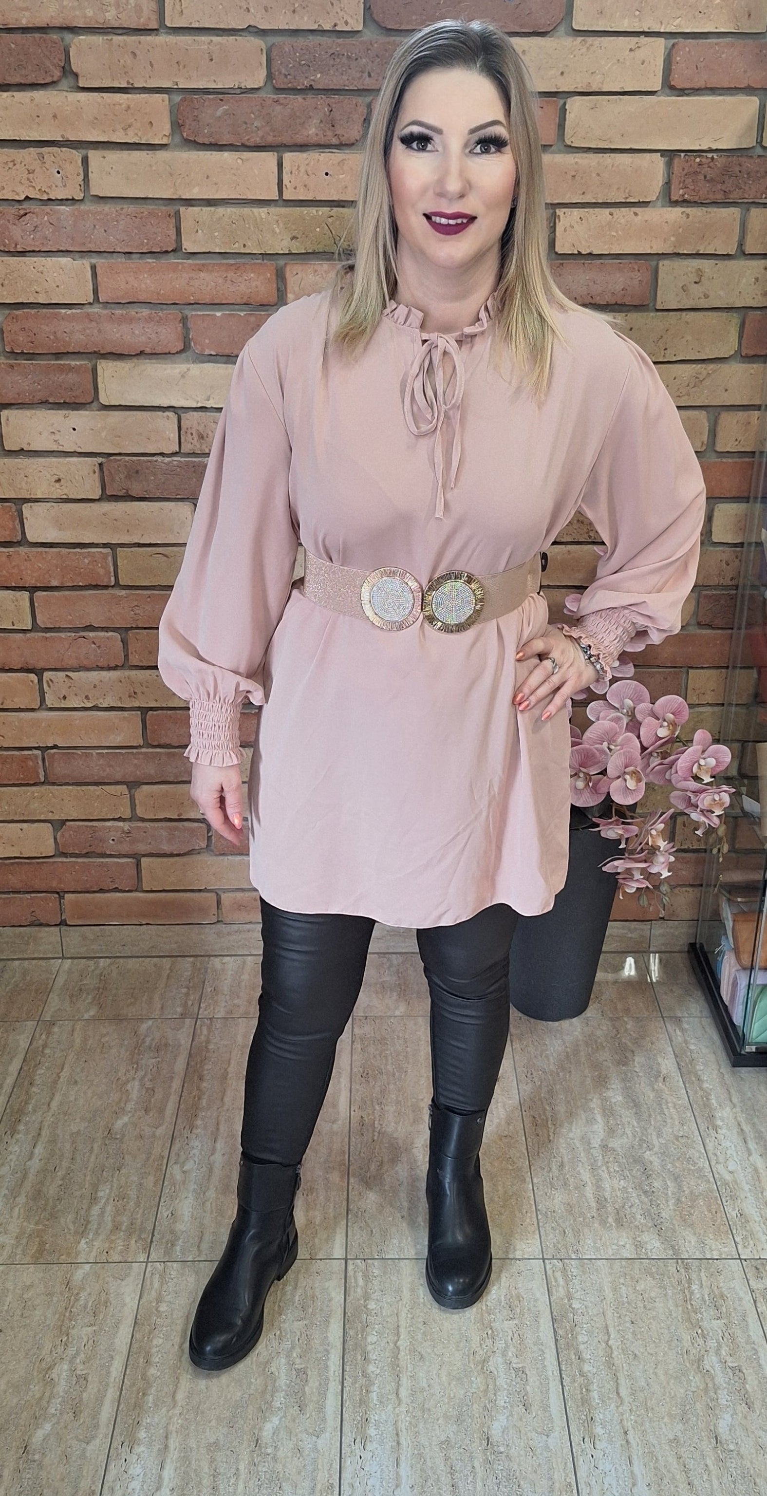Csinos, fodros nyakú blúz. Ujja ráncolt. Hosszított, egyméretes S-kisebb Xl-ig
