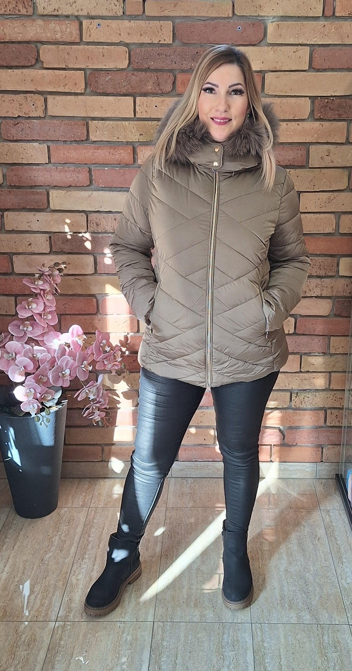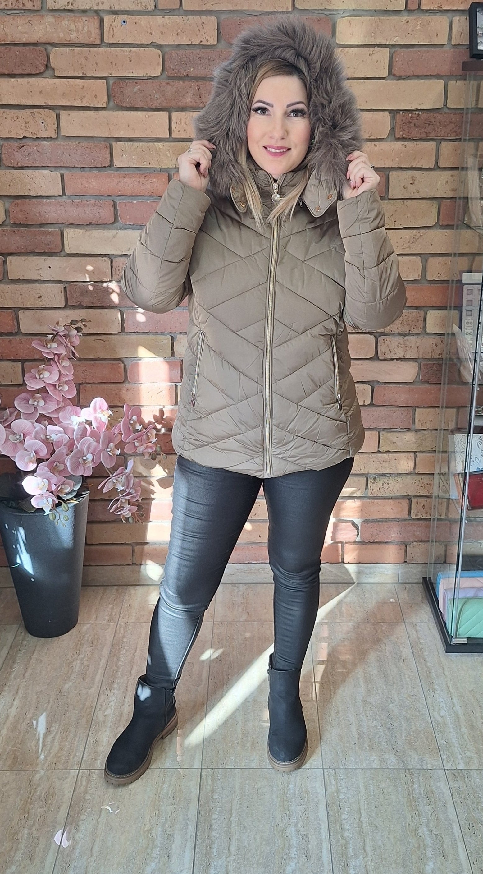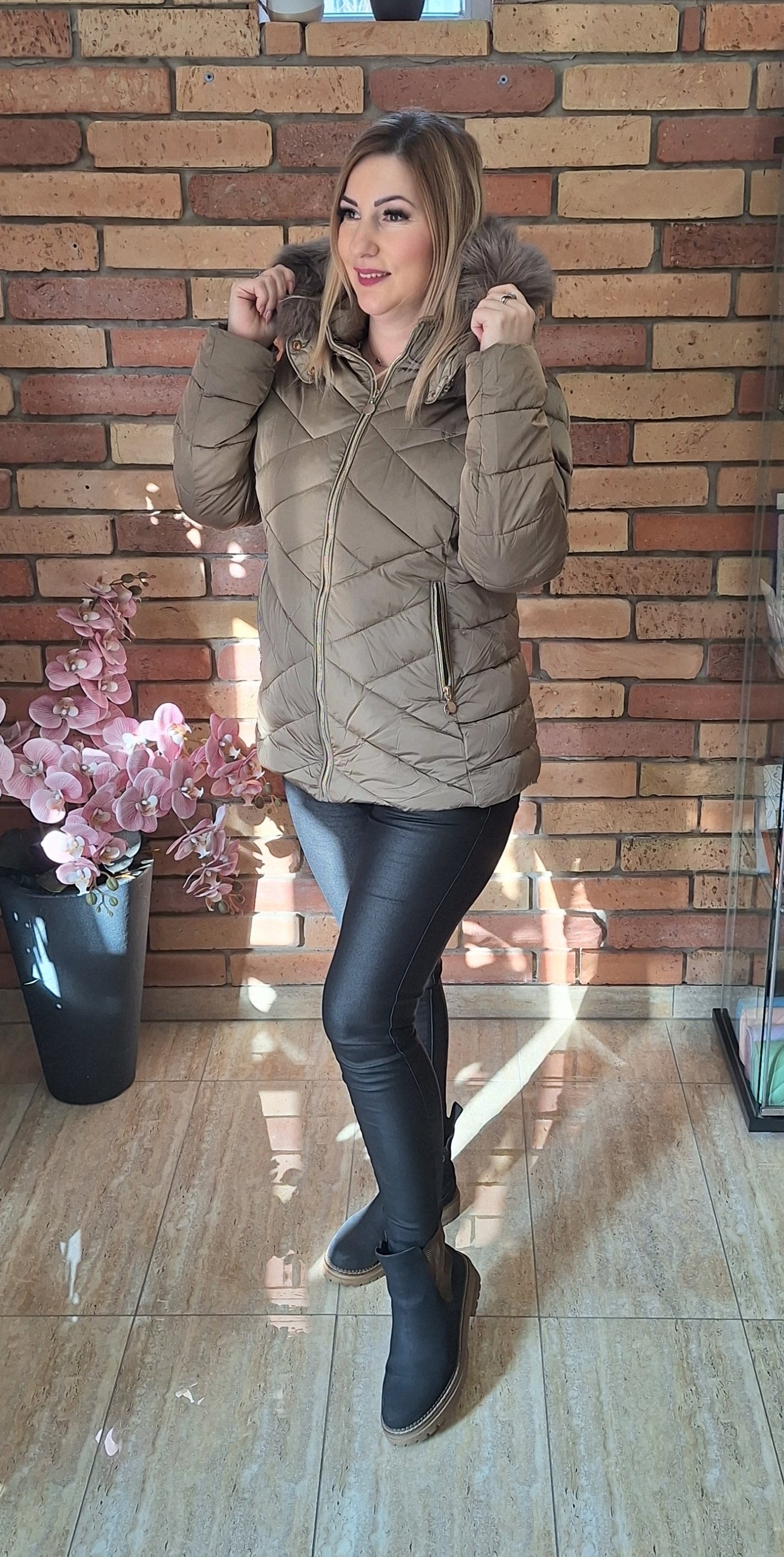 Rövid derekú, kapucnis téli kabát! Kapucnia lezipzárolható! Elől nyakrésznél gombolható!