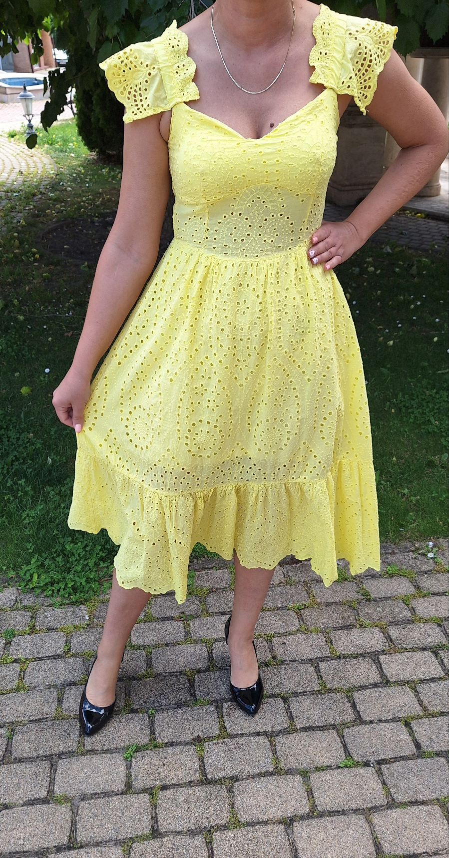 Csodaszép madeira ruha! Nyaralásra, alkalomra tökéletes választás! Mellrésznél szivacsos és hátul gumis! Egyméretes S-m méretre ajánlom!