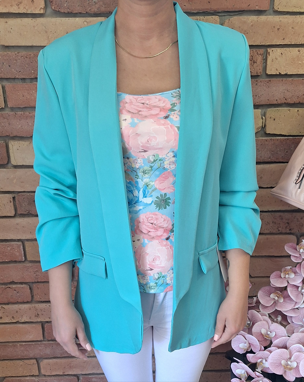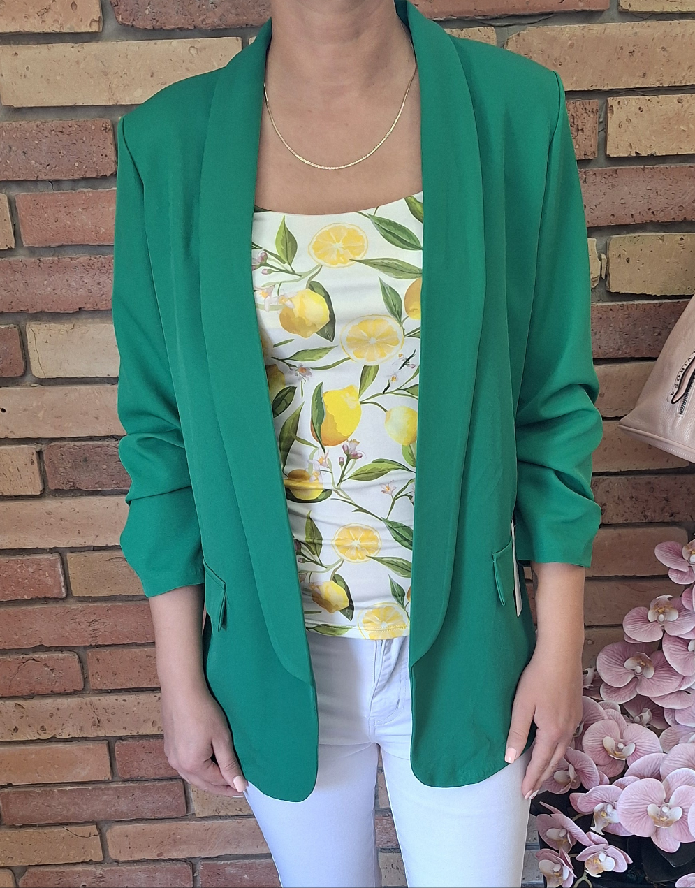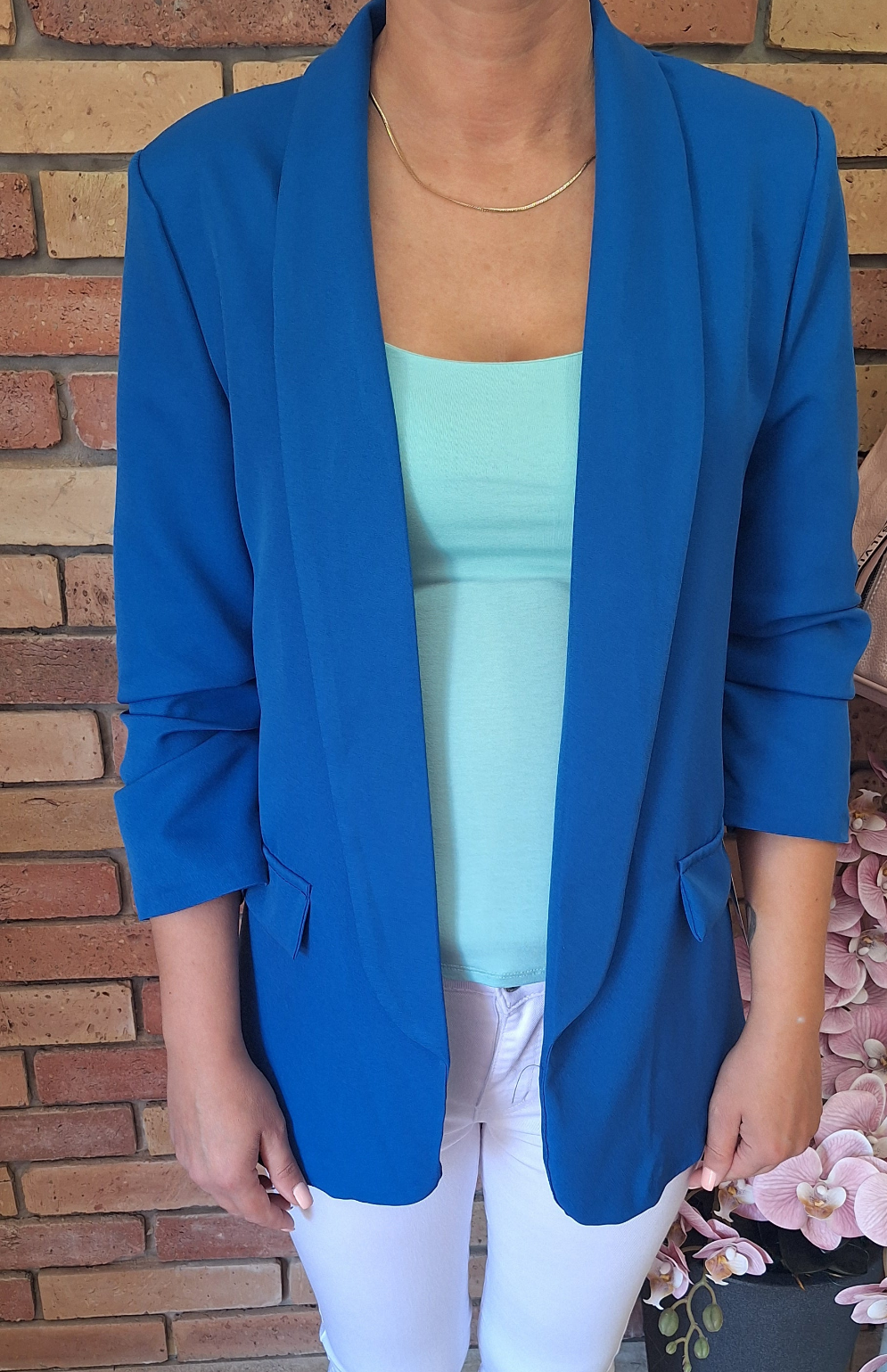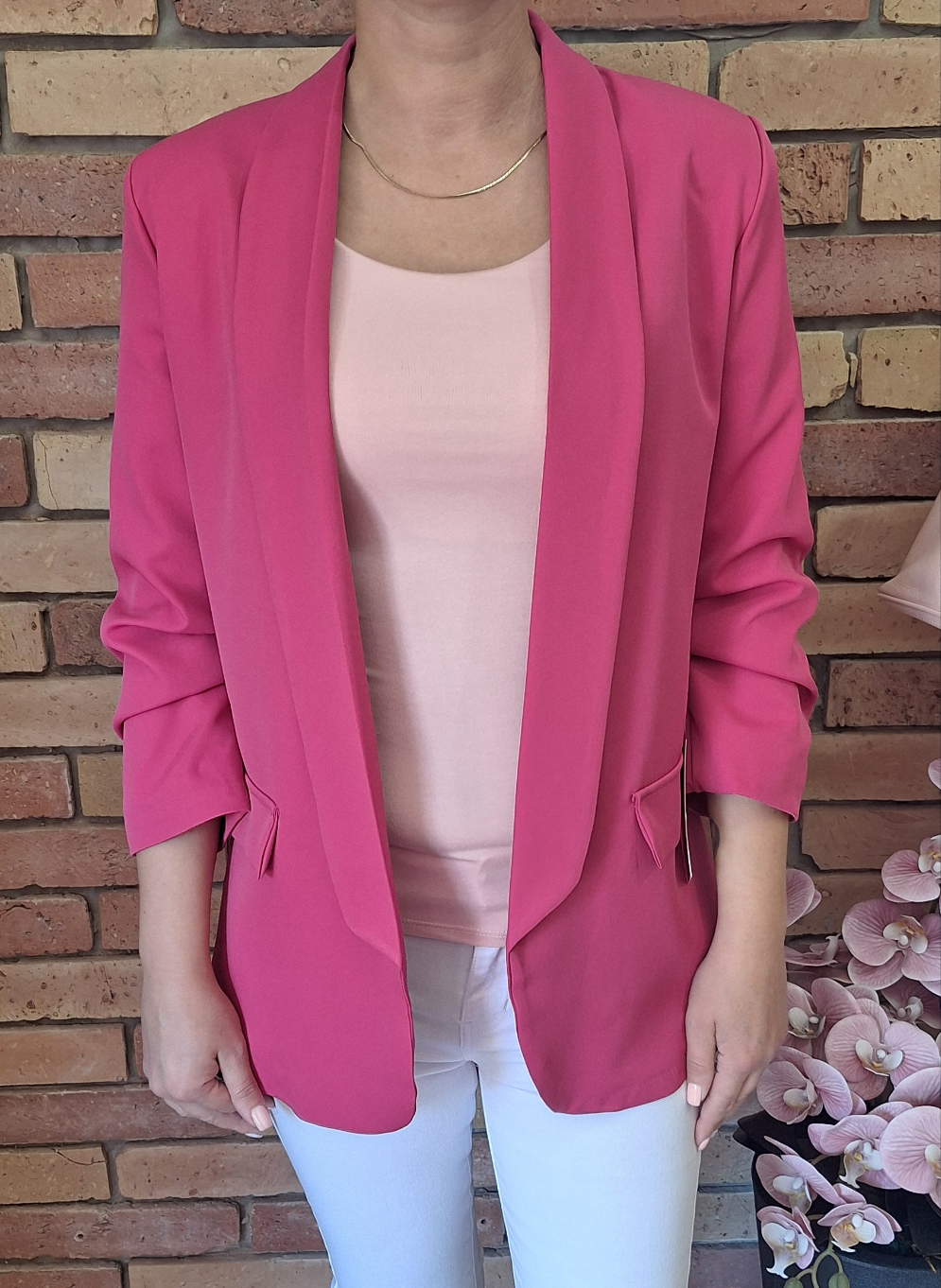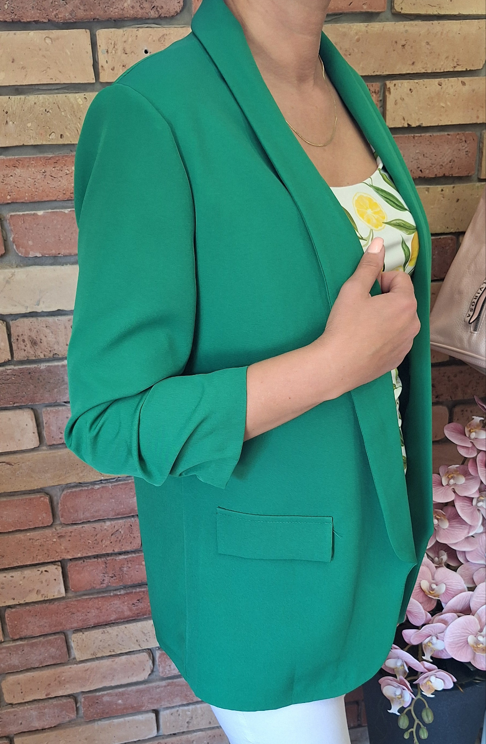 Nagyméretű, egyméretes blézer! Húzott, háromnegyedes ujjú! Gomb nélküli!