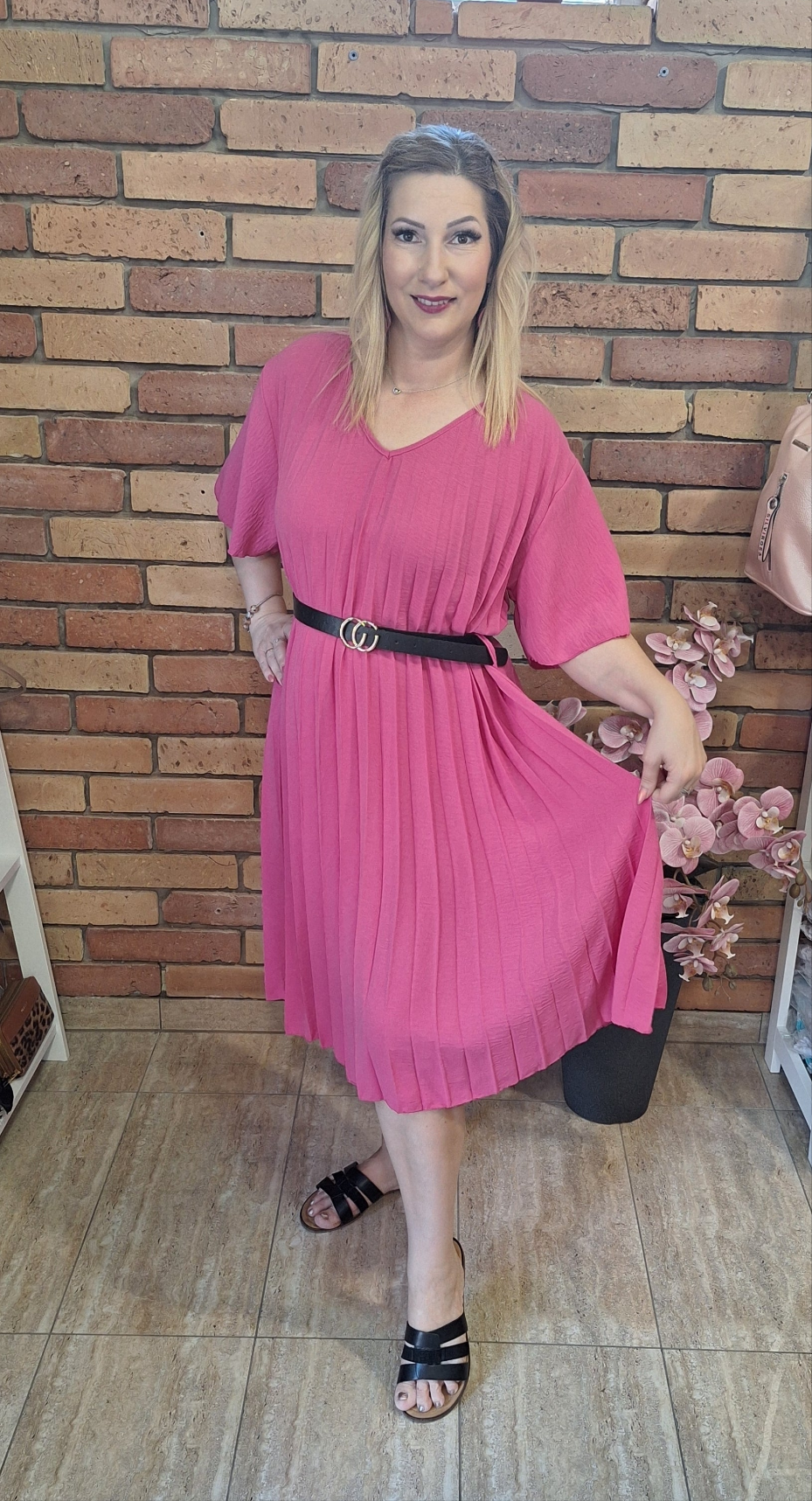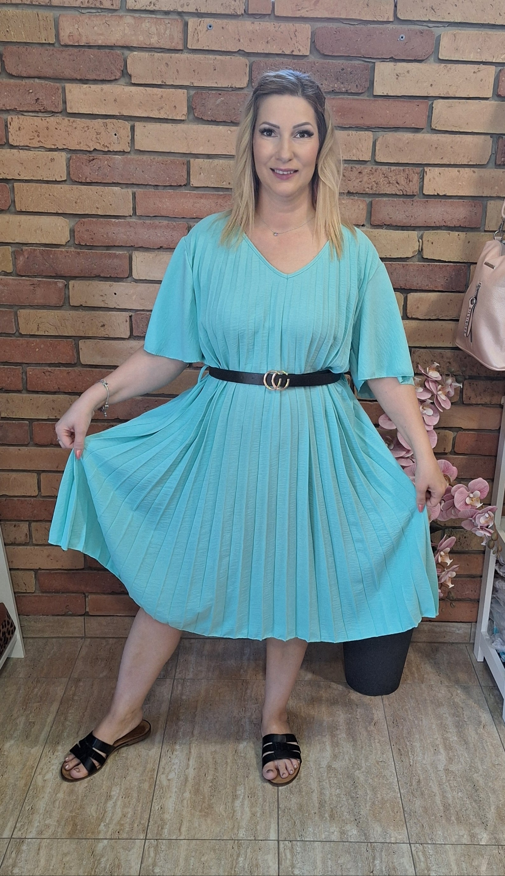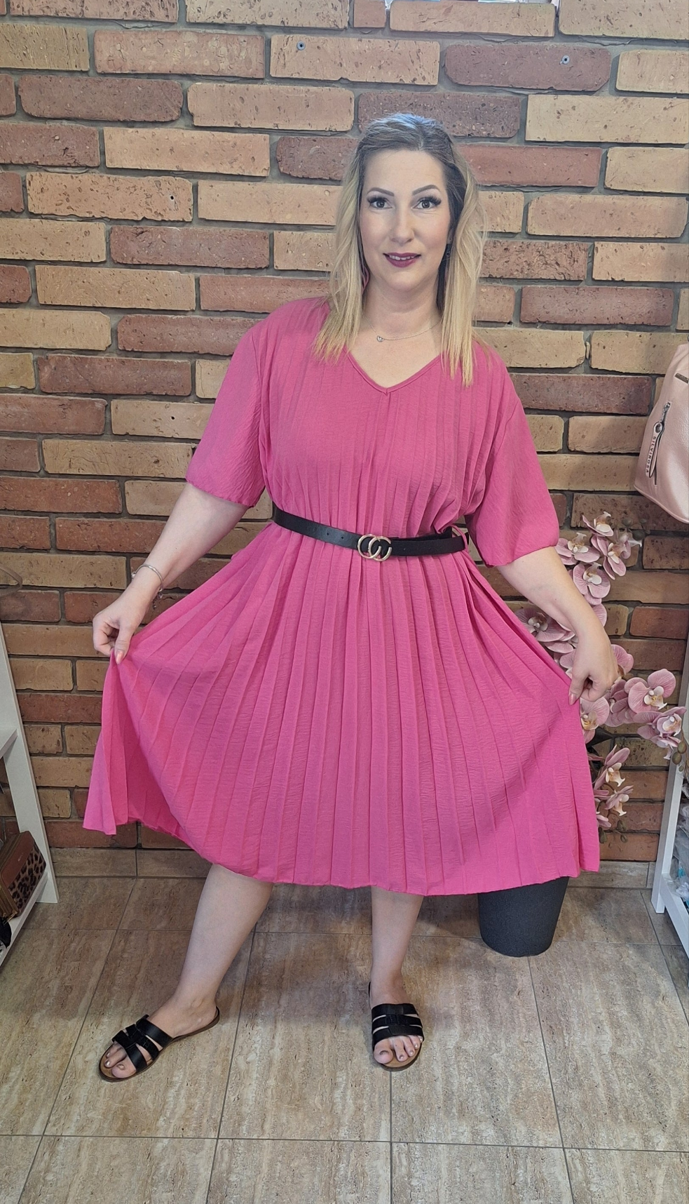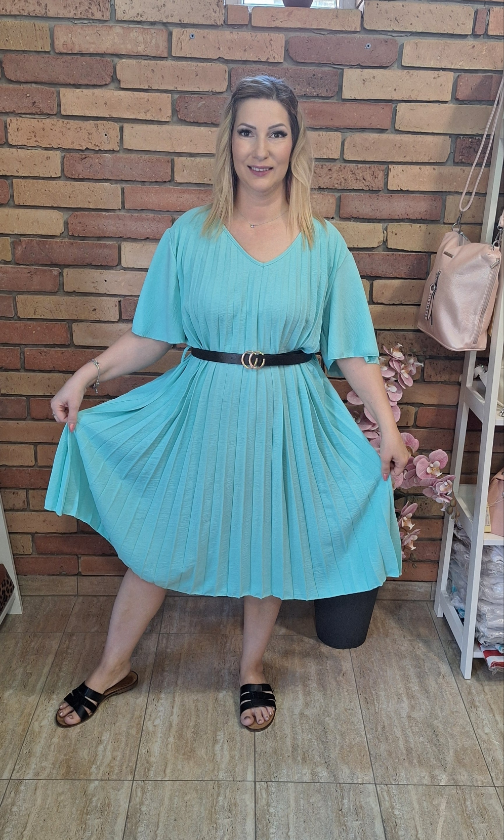 Akár alkalomra is tökéletes ez a gyönyörű plisszírozott ruha! Öves. Egyméretes M-XXL-ig ajánlom!