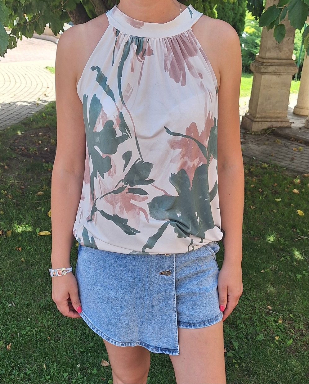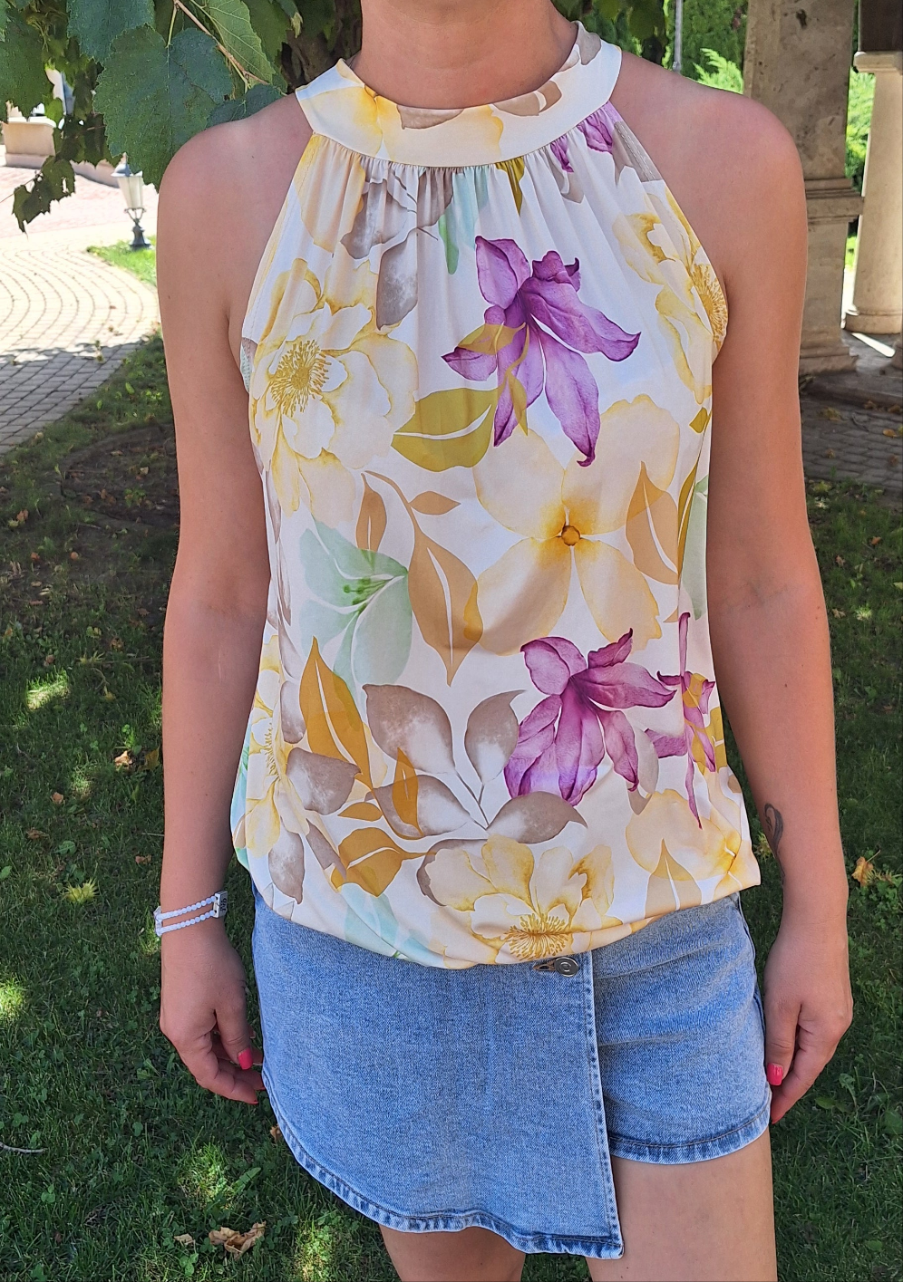 Hidegselyem, rugalmas felső. Gumis aljú, hátul a nyakán megkötős! Egyméretes S-xl-ig