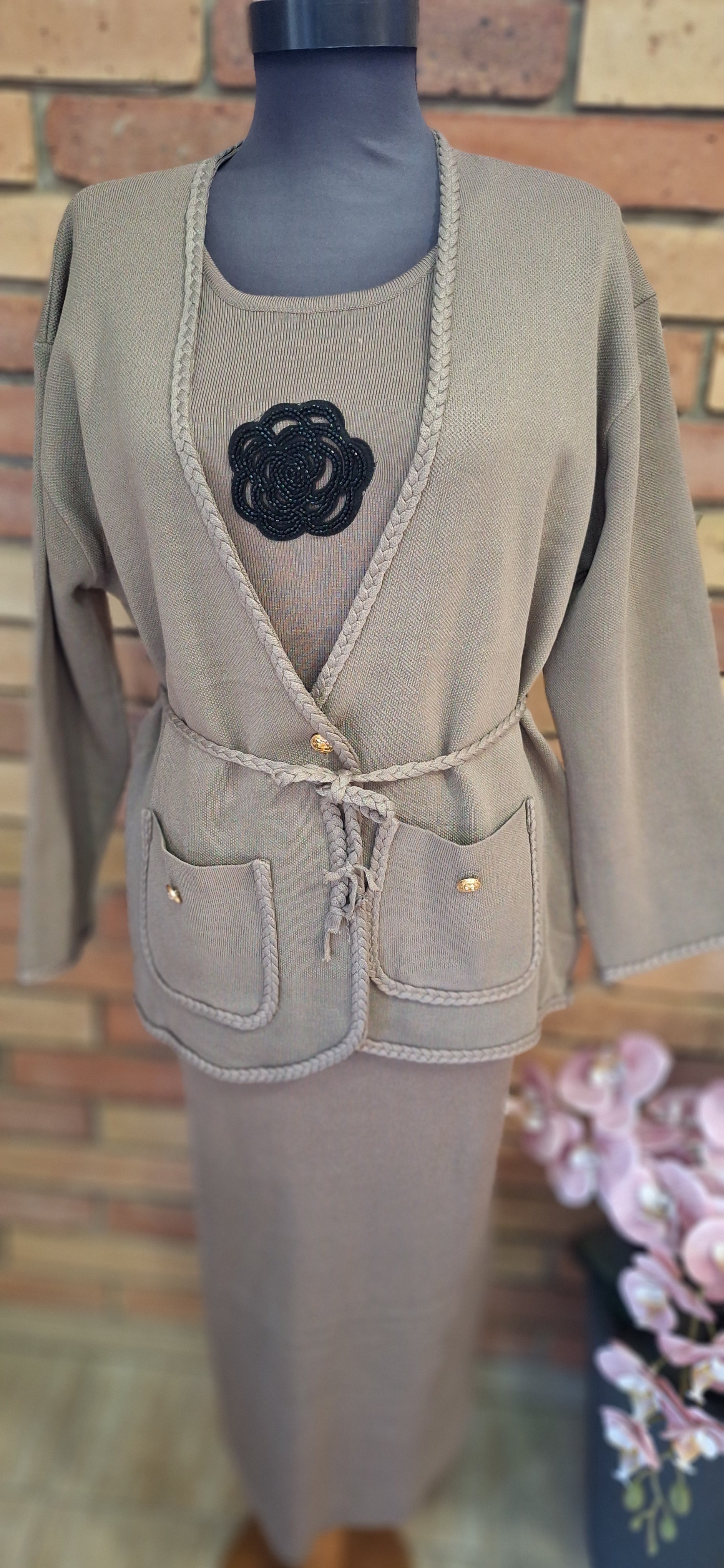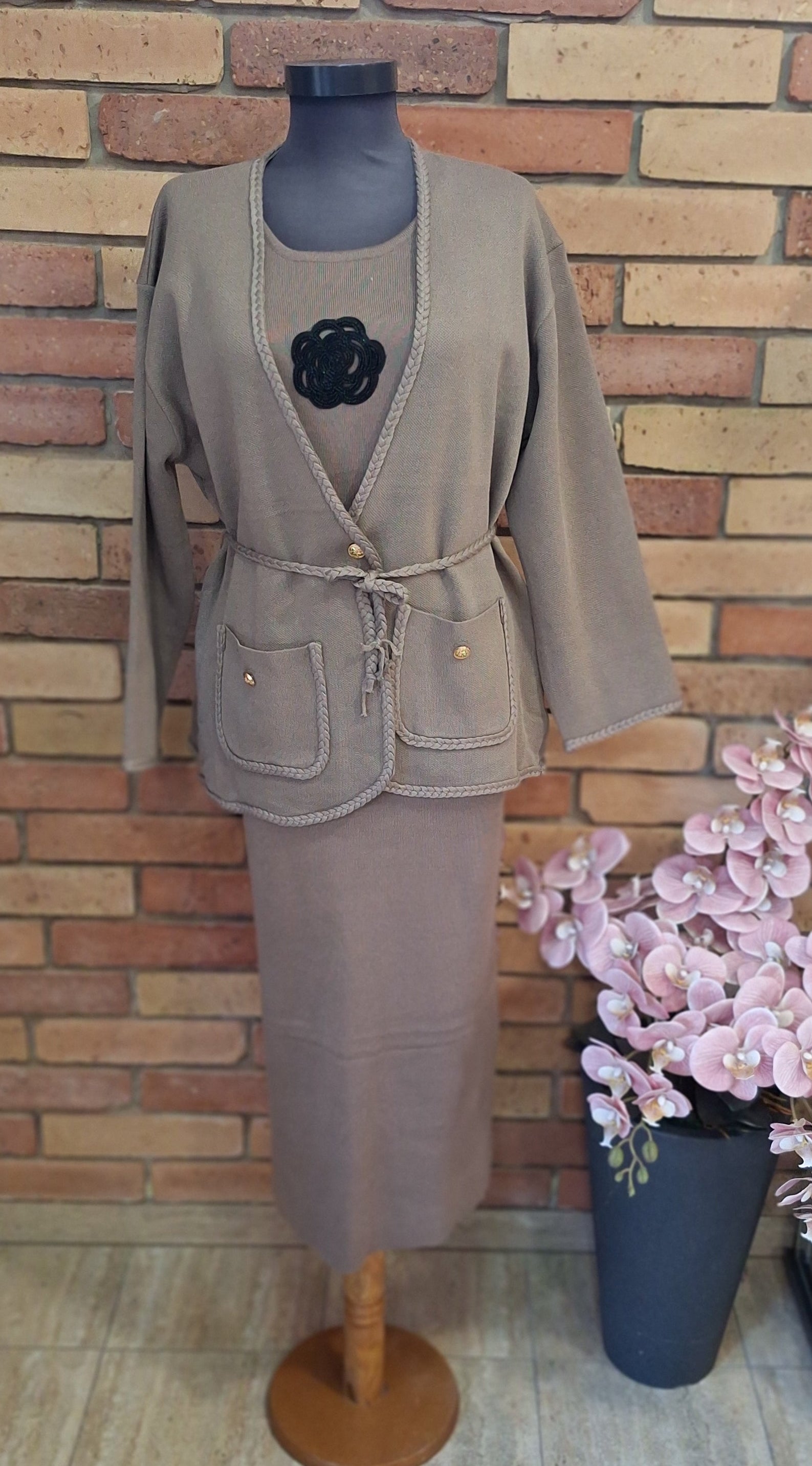 Igazán különleges és elegáns szett! Kötött, rugalmas anyagú! A ruha rövidujjas, virág díszítéssel! Kardigán zsebes, megköthető! A kardigan egy lazább fazonú , direkt bővebb kialakítású! Külön és egyben is hordható így két darabot kapsz egy áron!