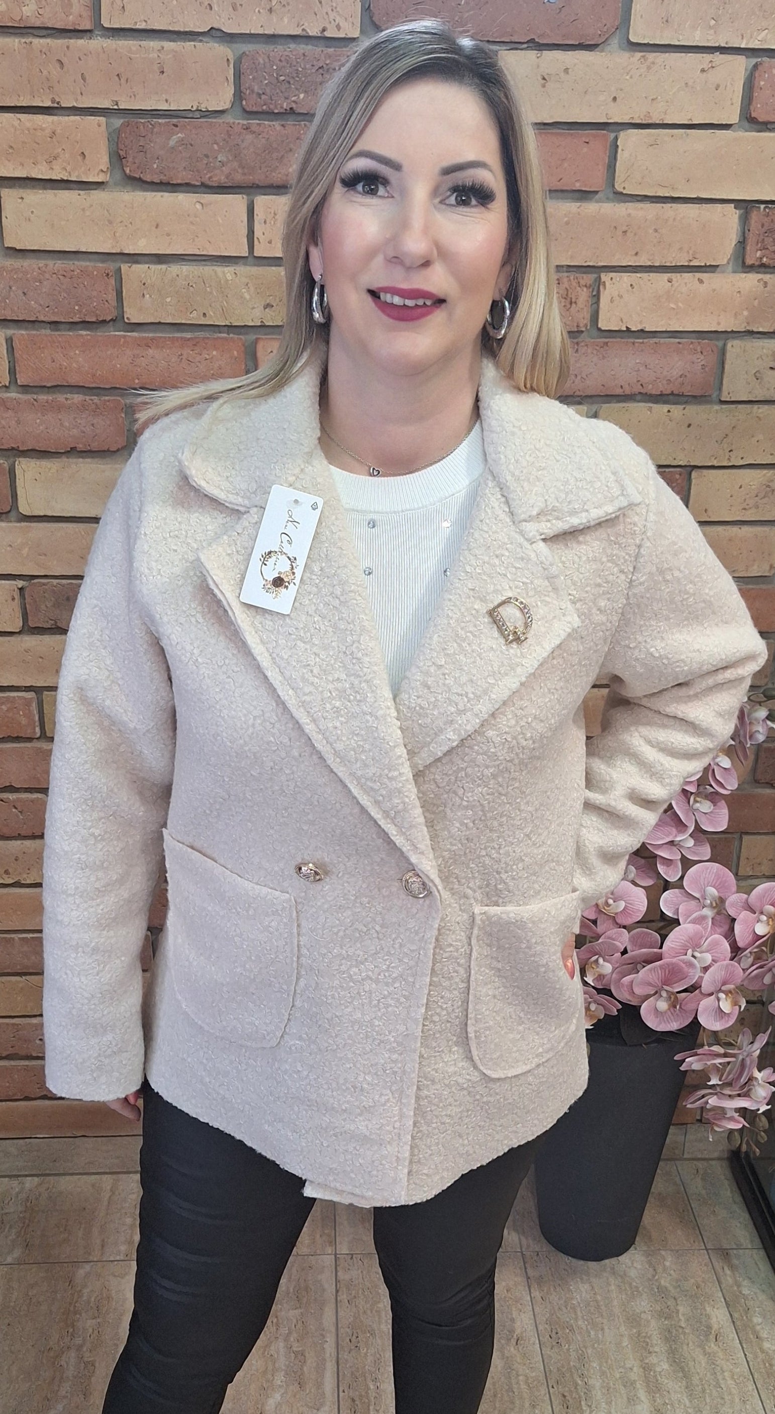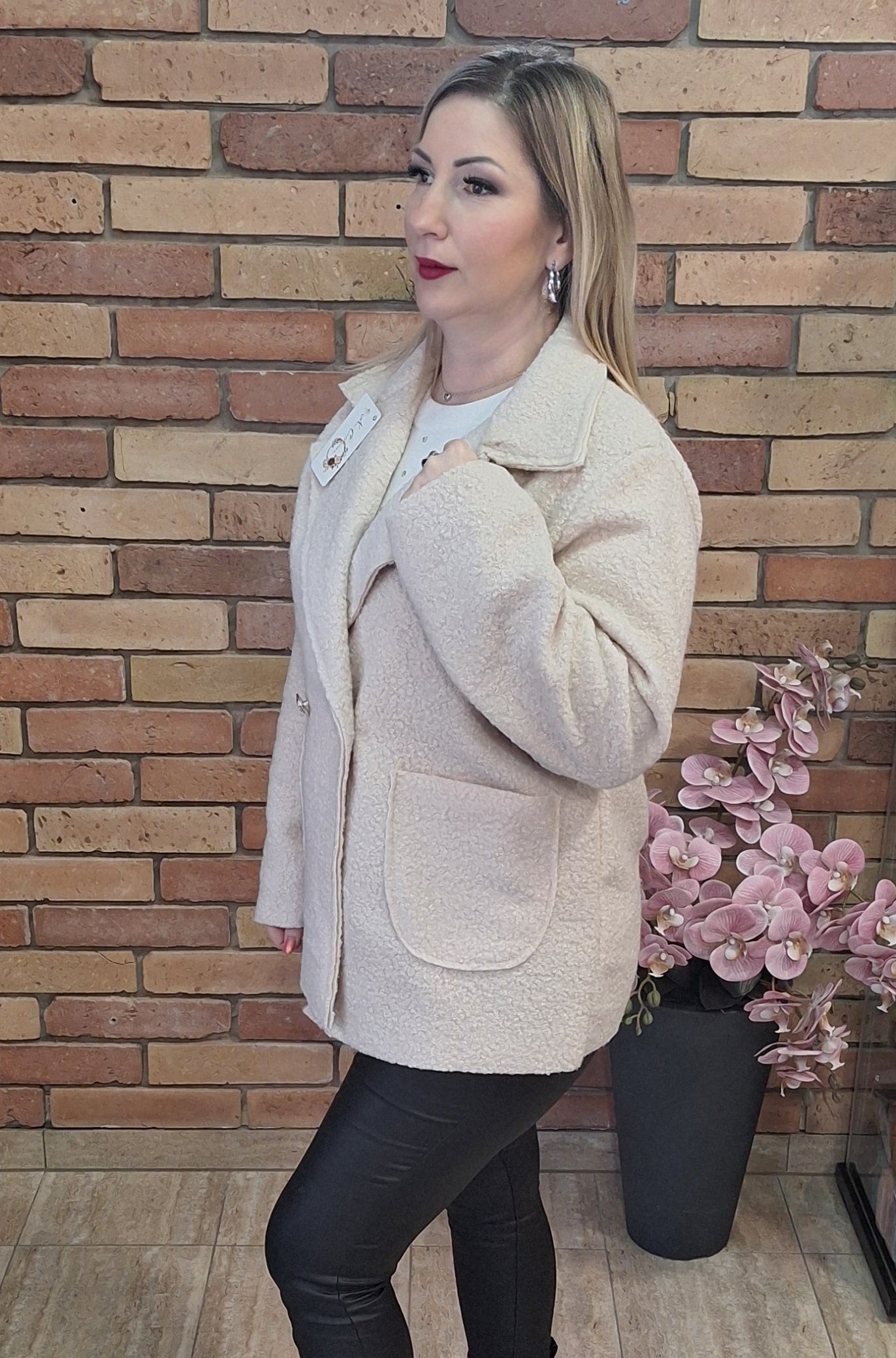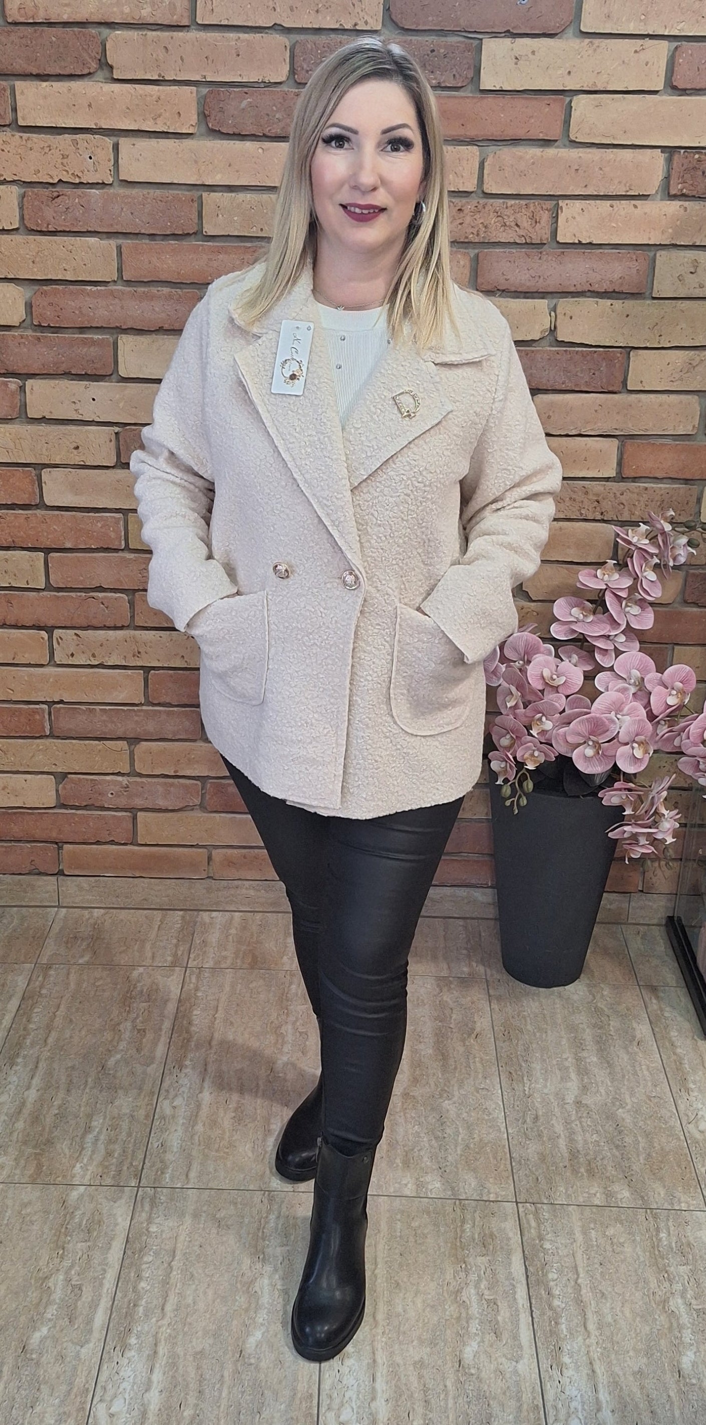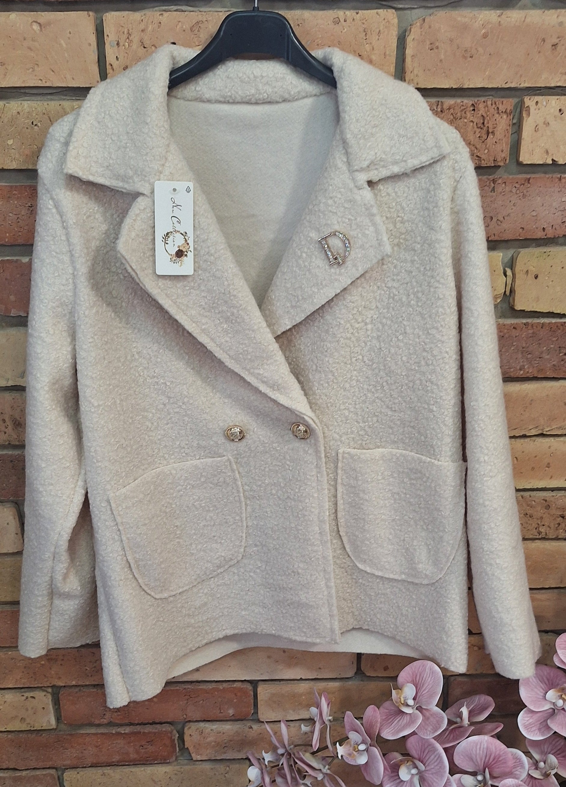 Csinos tavaszi kabát! Gombos, zsebes. Bross díszíti ami levehető. Egyméretes M-Xl-ig