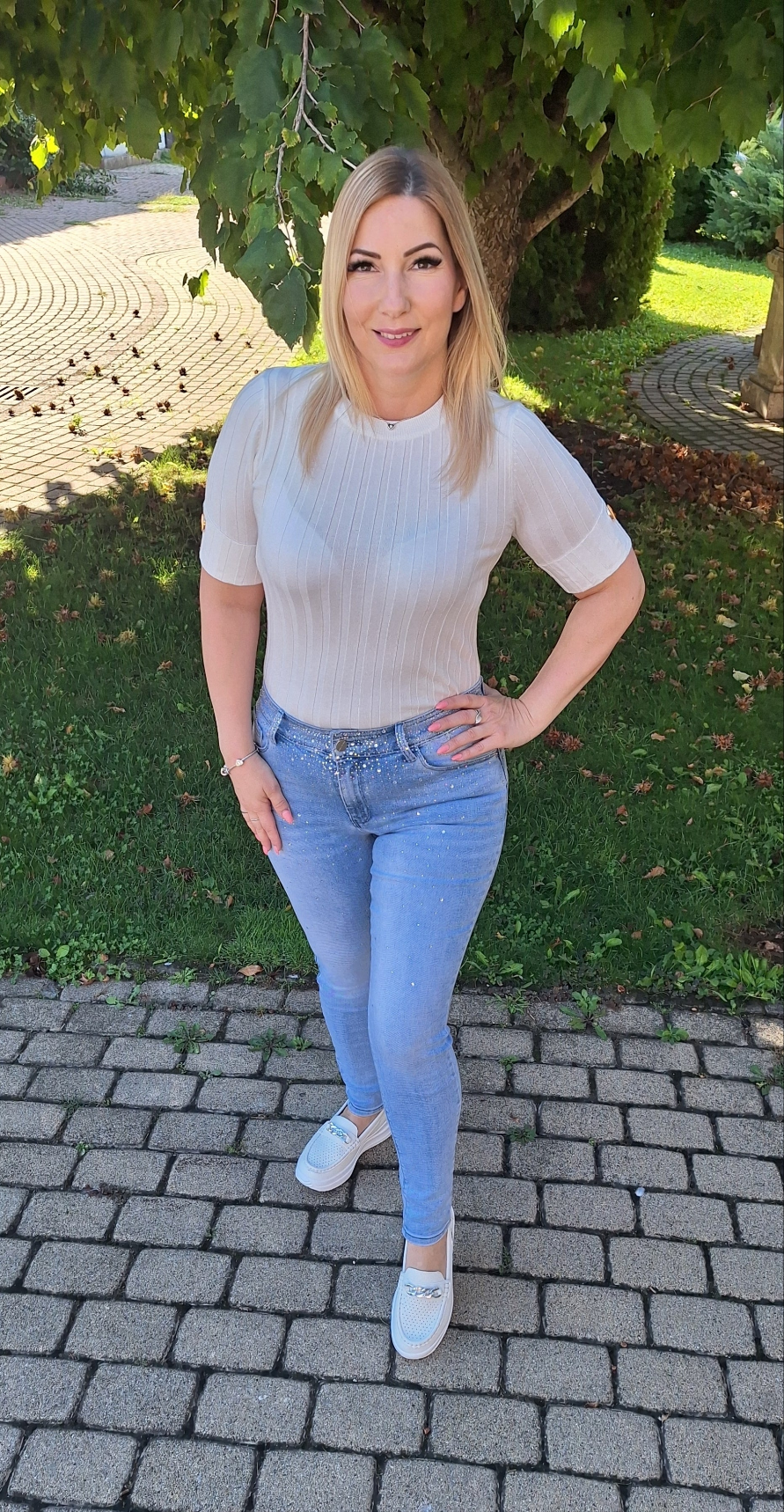 Csillogó köves csőszárú nadrág! Rugalmas. Méretes!