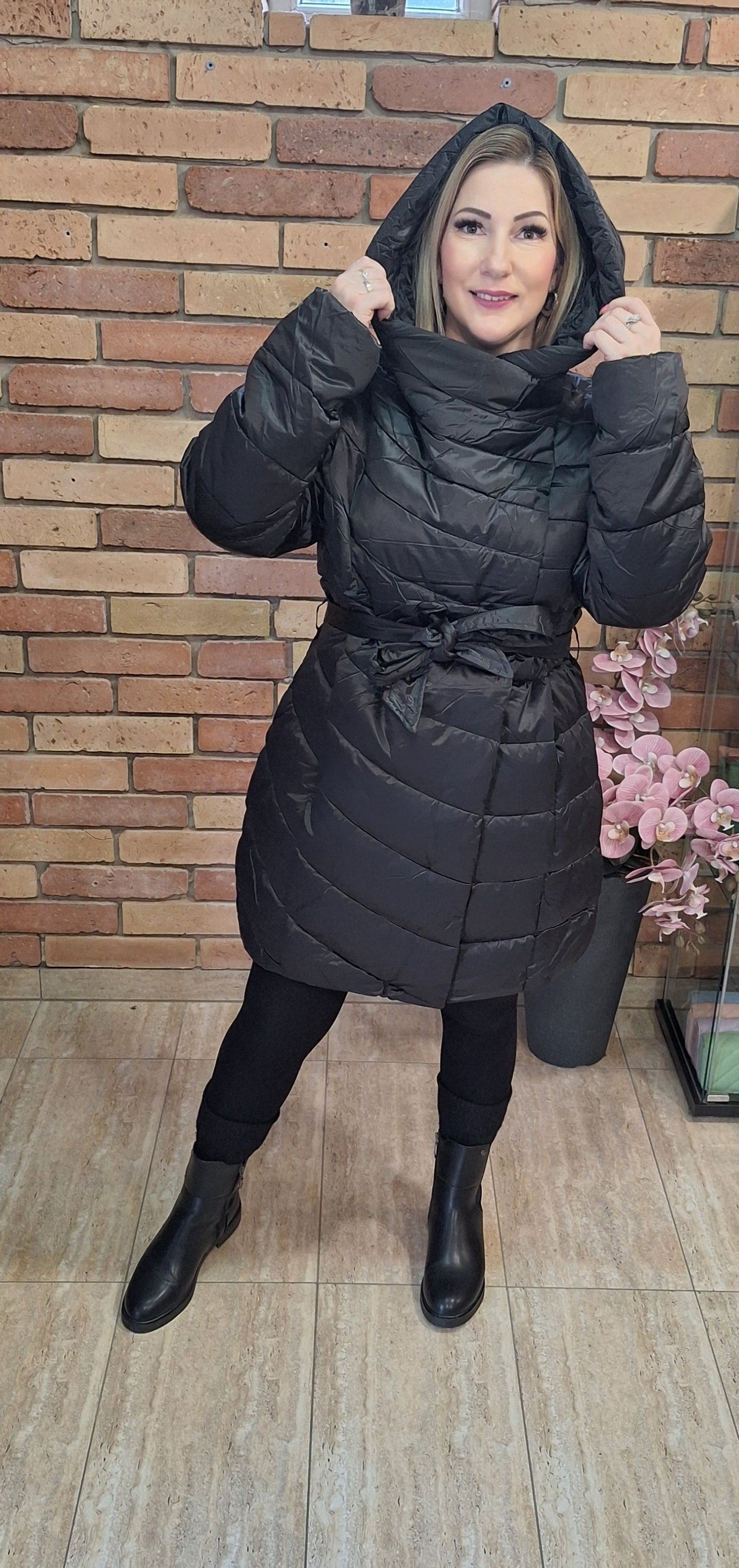 Steppelt kapucnis kabát övvel! Nagyméretű.