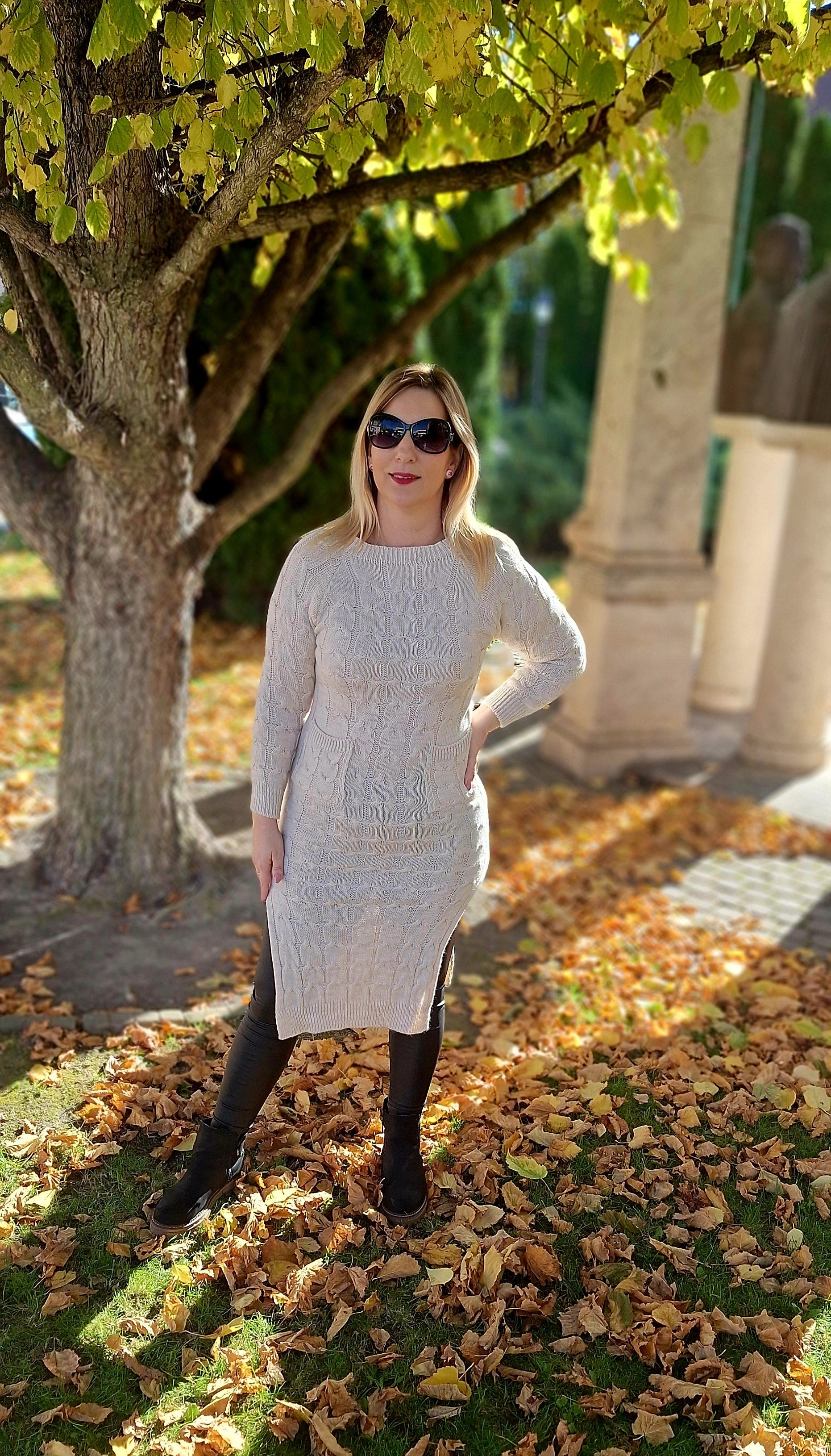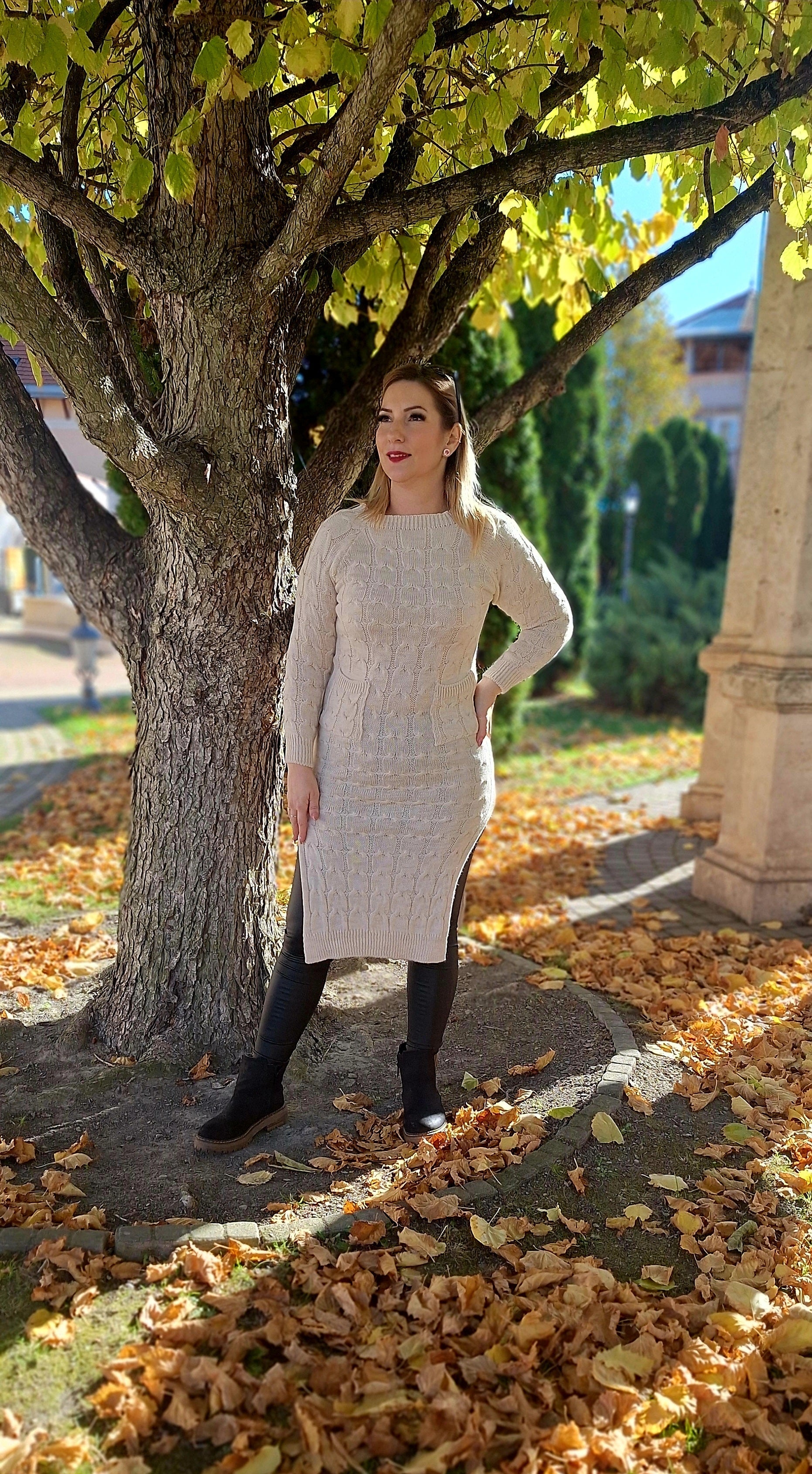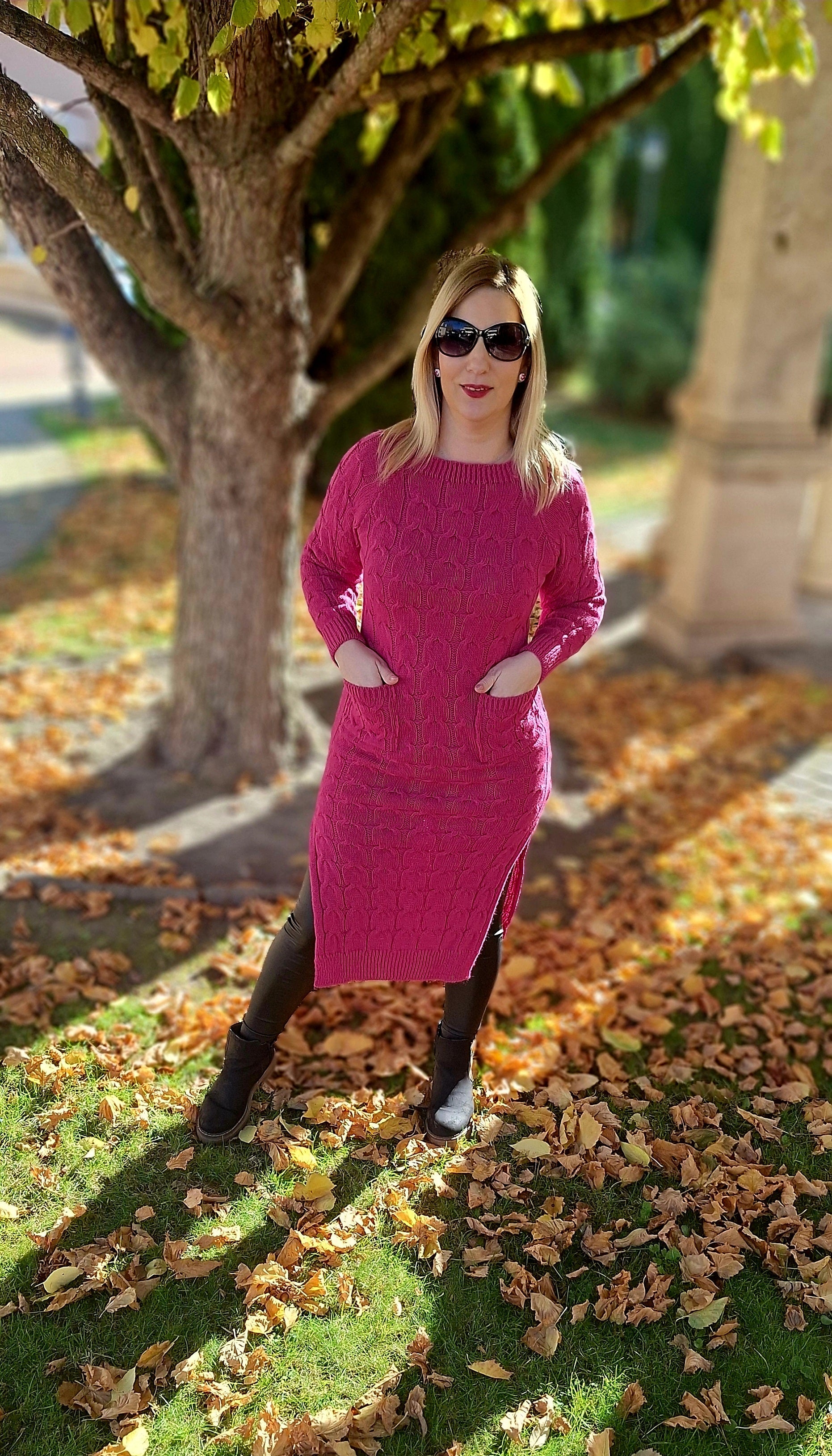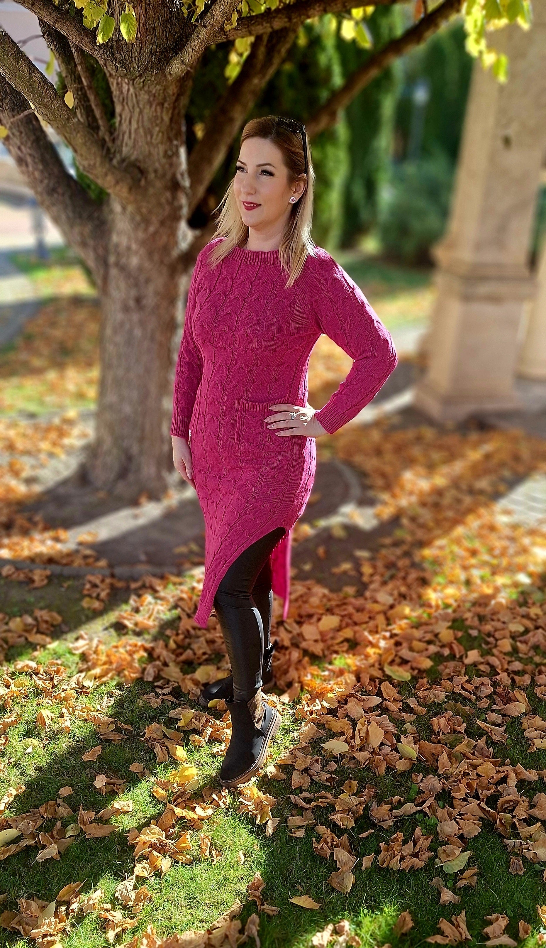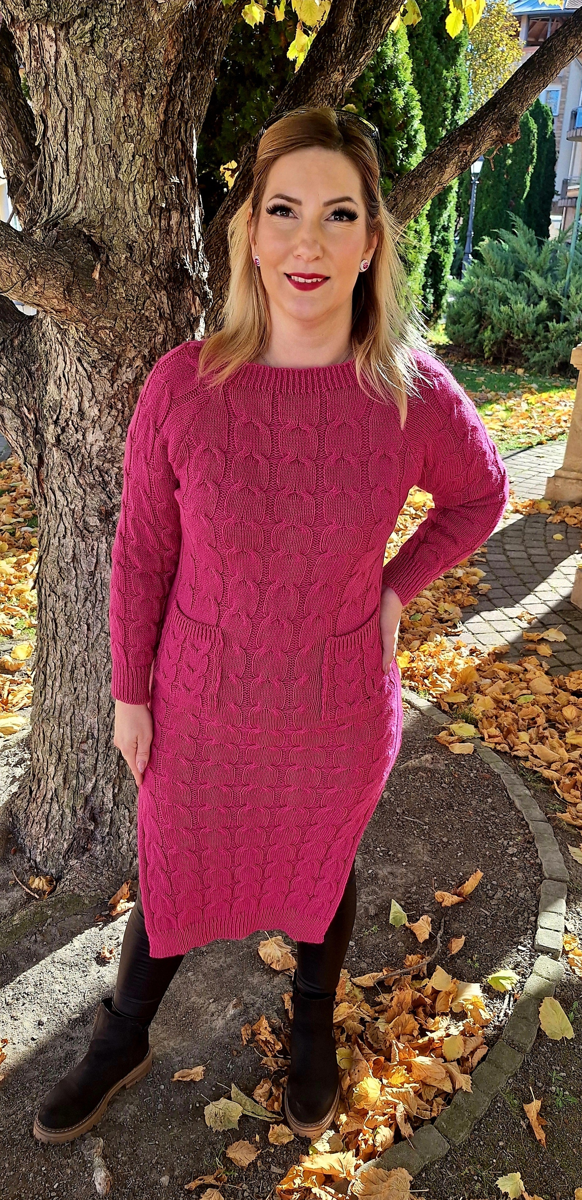Kötött, felsliccelt tunika, ruha! Zsebes, anyagában mintás! Egyméretes S-l