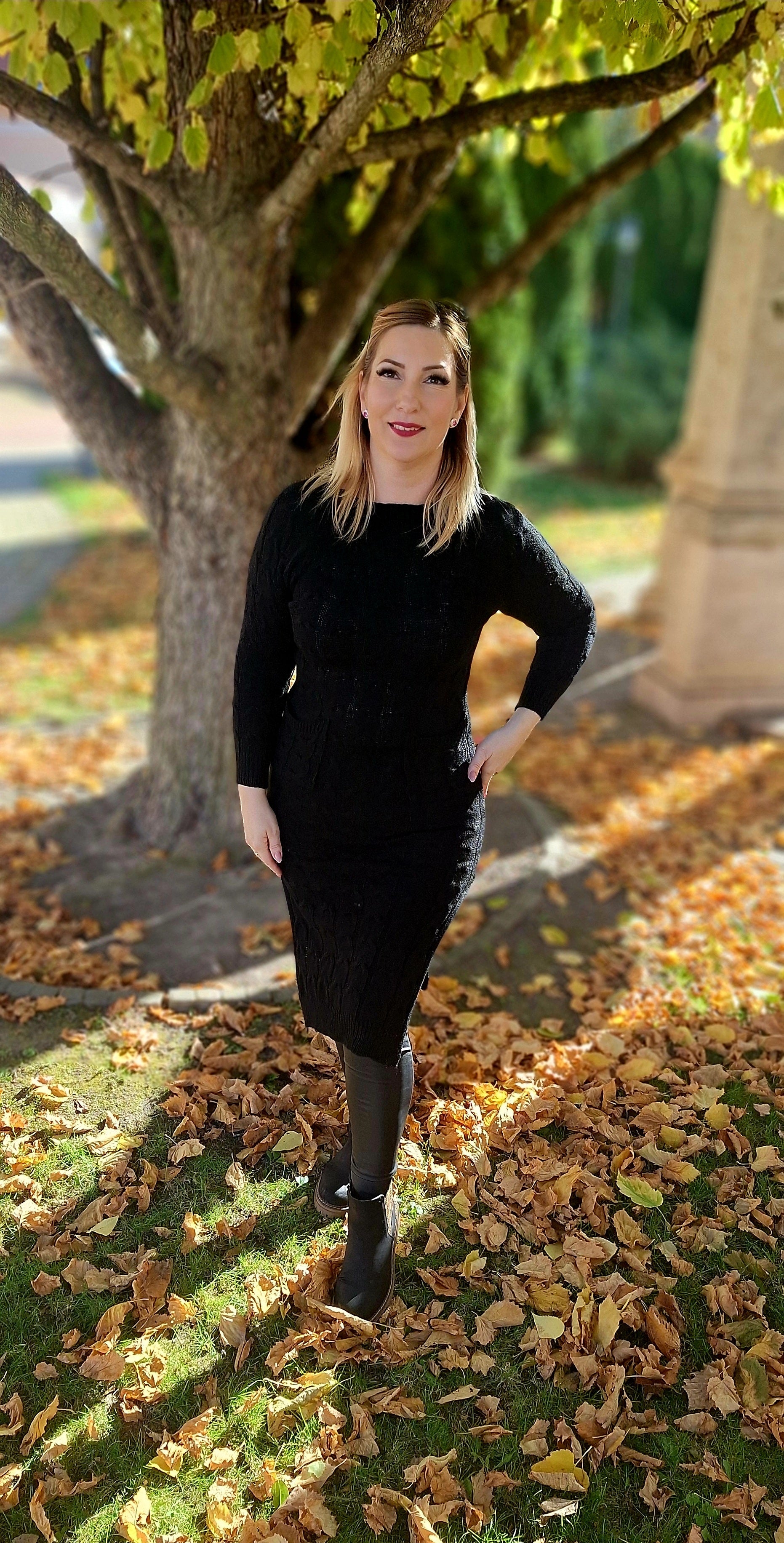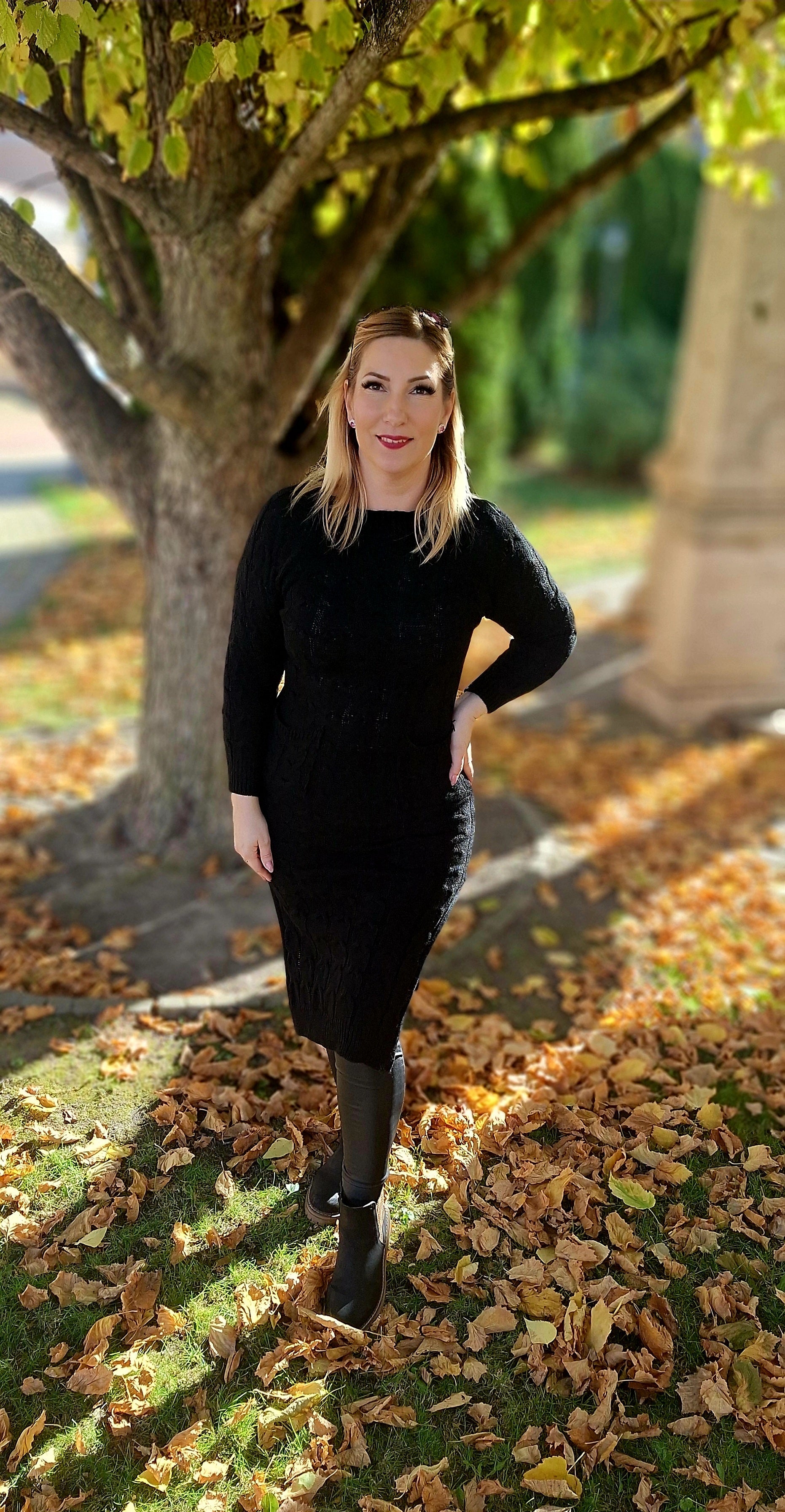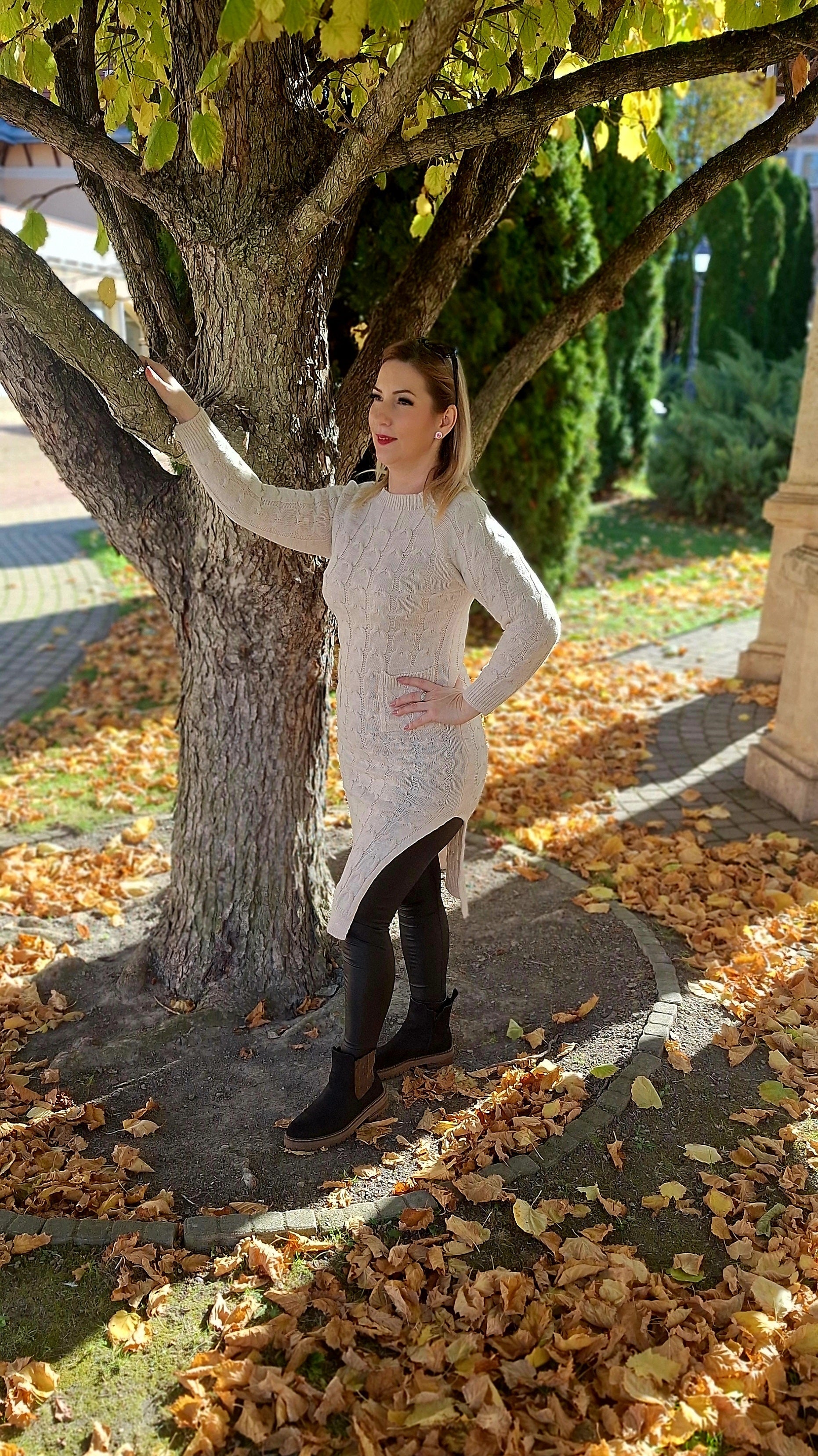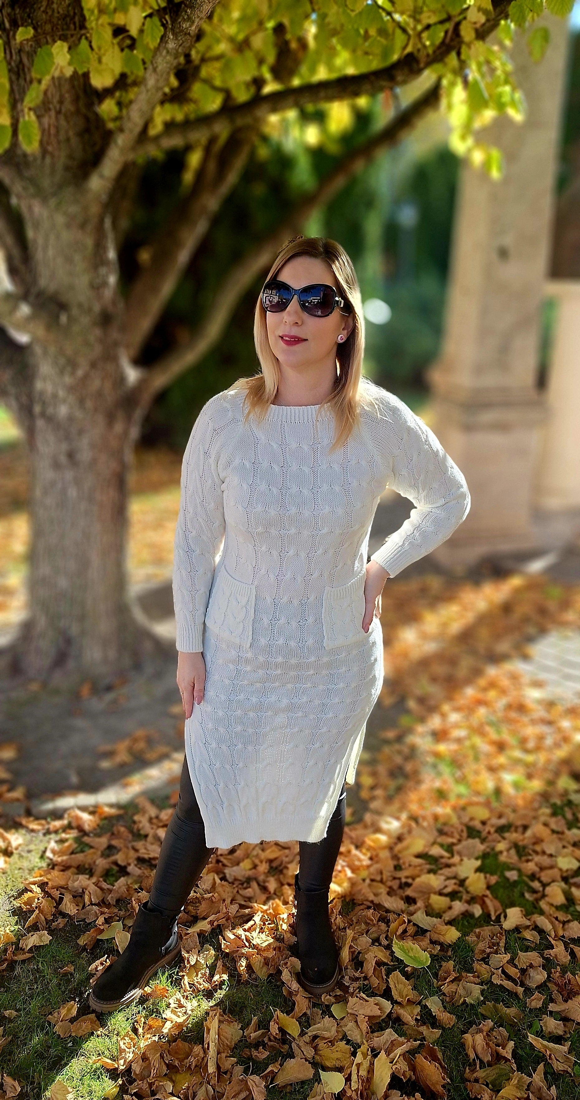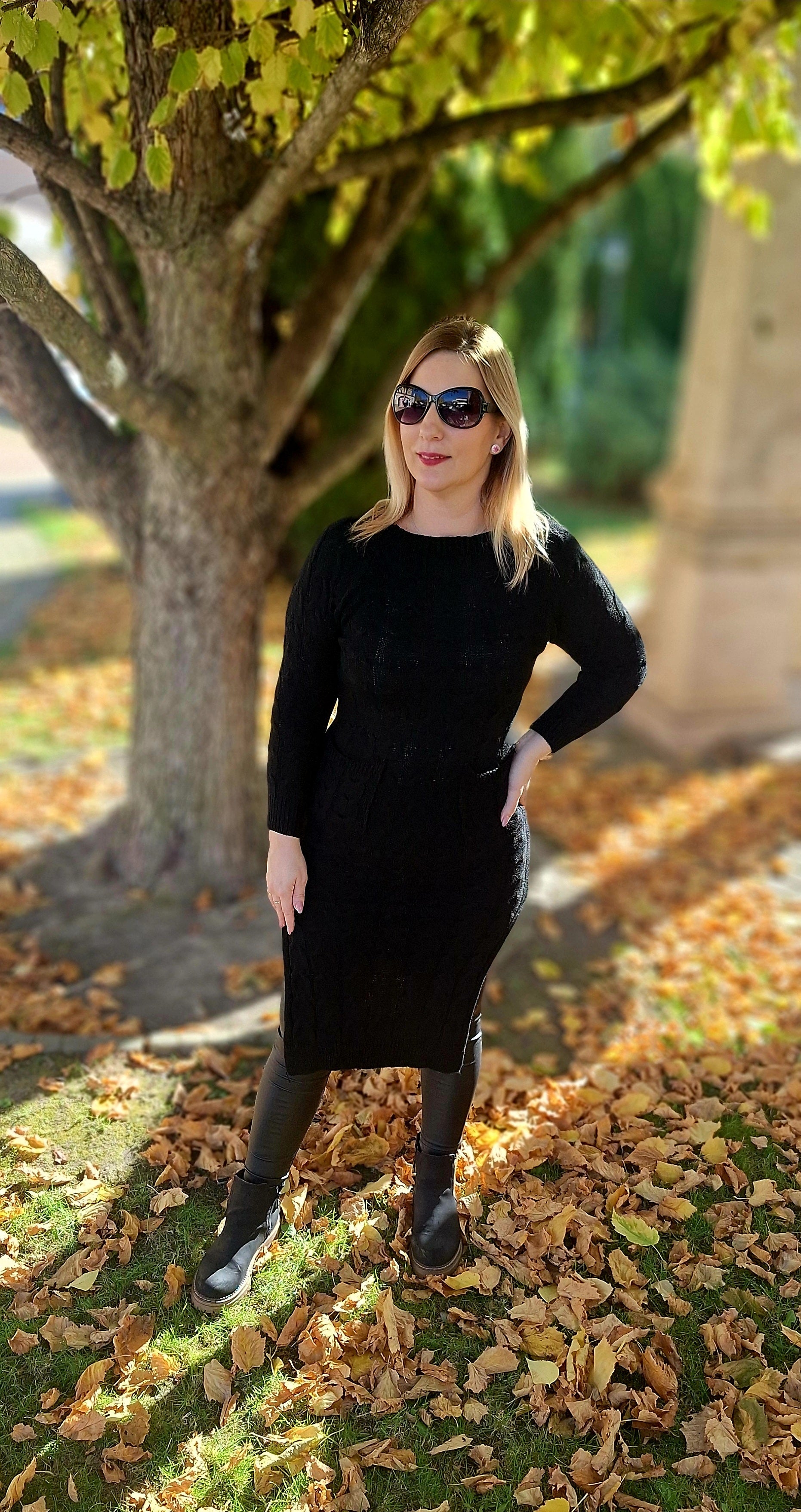 Kötött, felsliccelt tunika, ruha! Zsebes, anyagában mintás! Egyméretes S-l