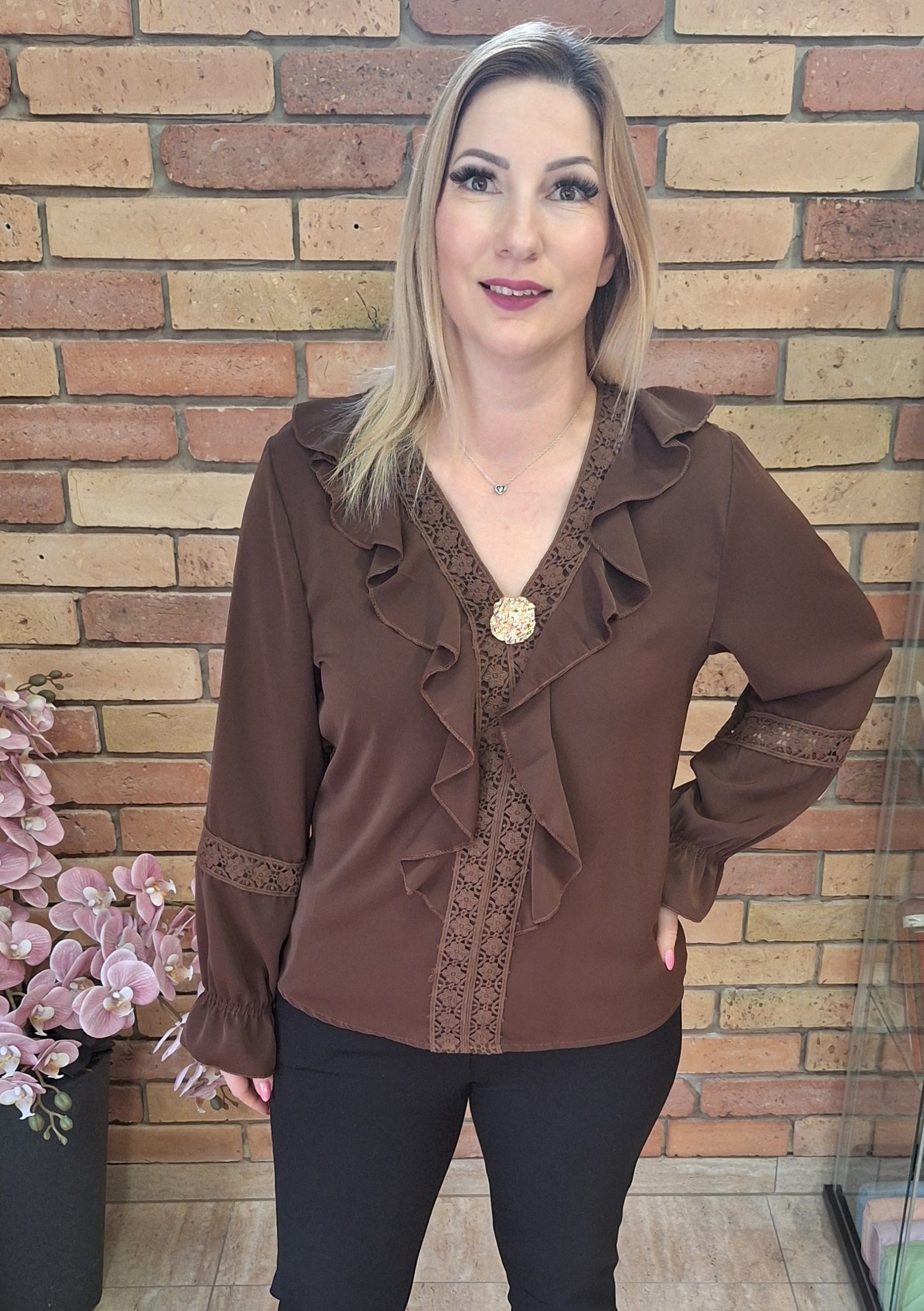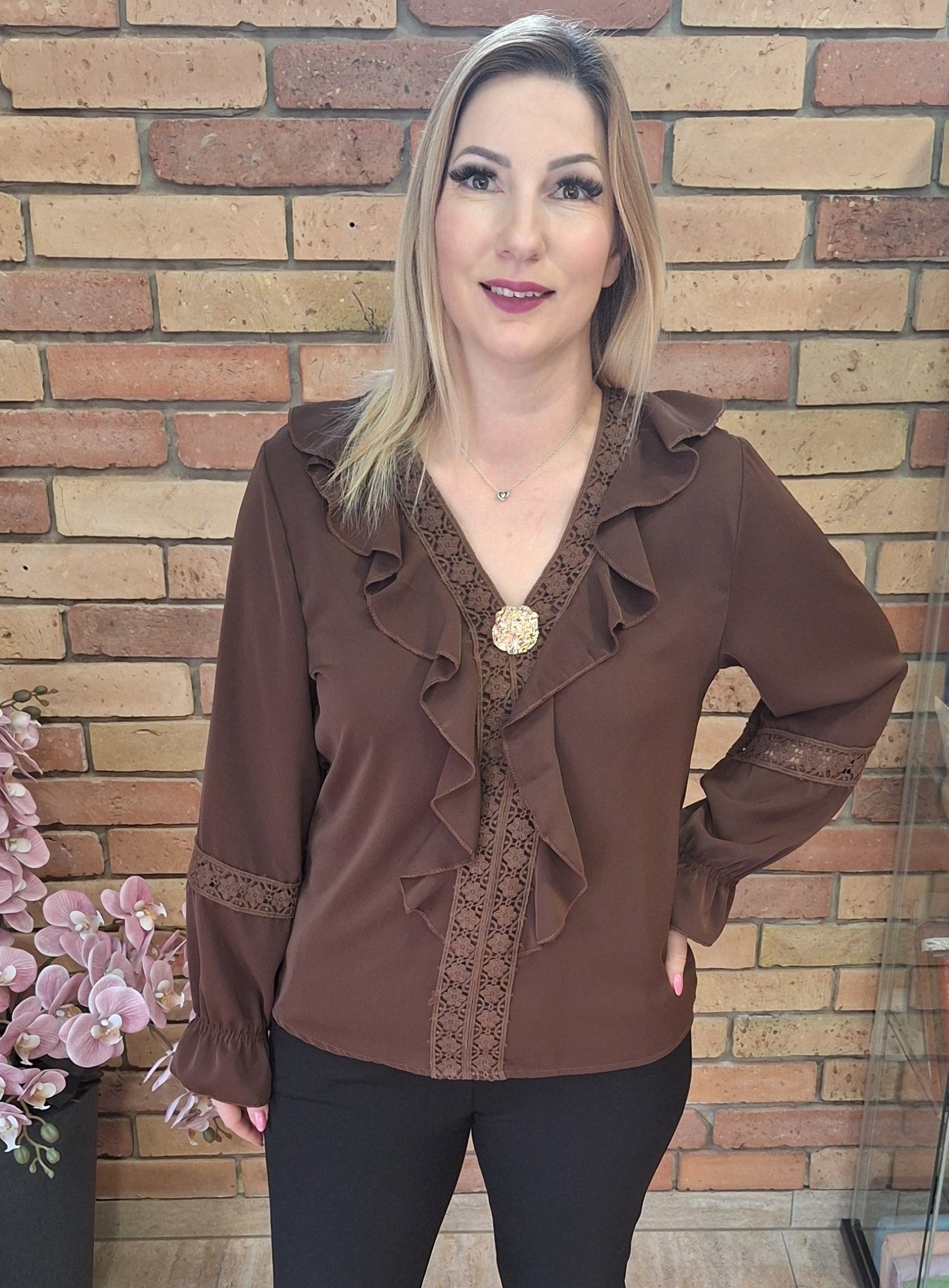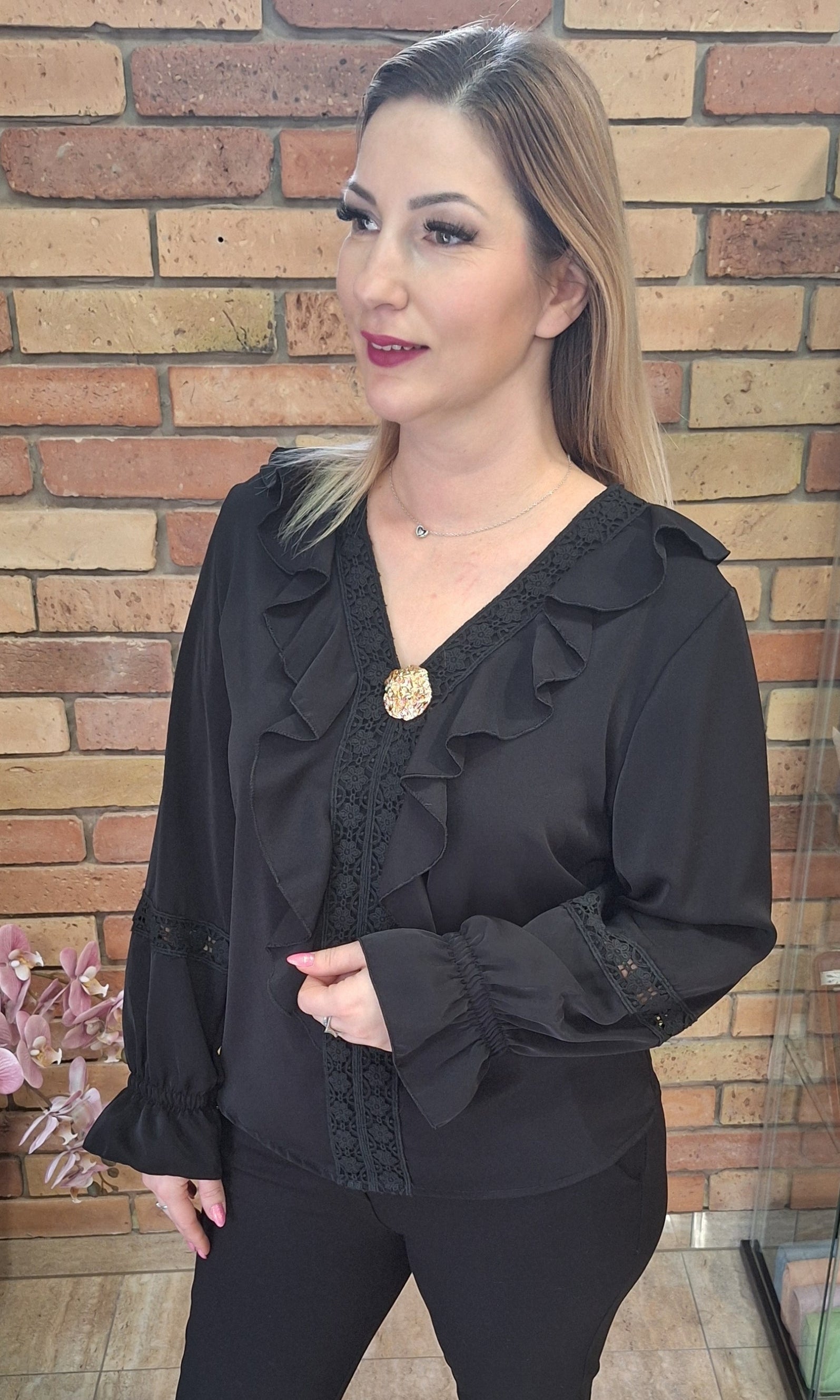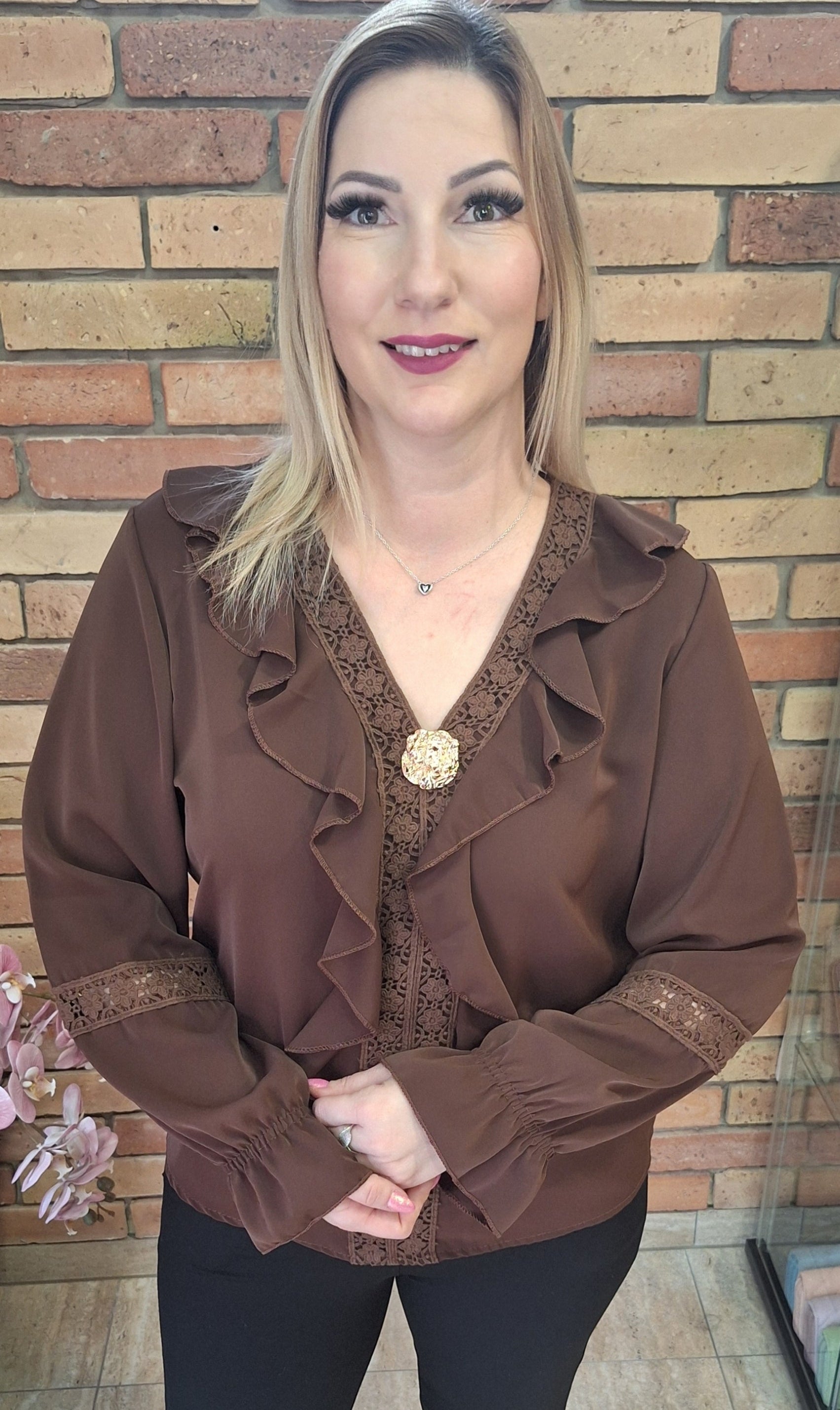 Csodaszép V-kivágású fodros blúz ajándék brossal! 😊