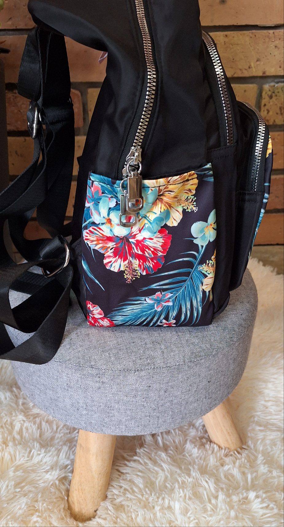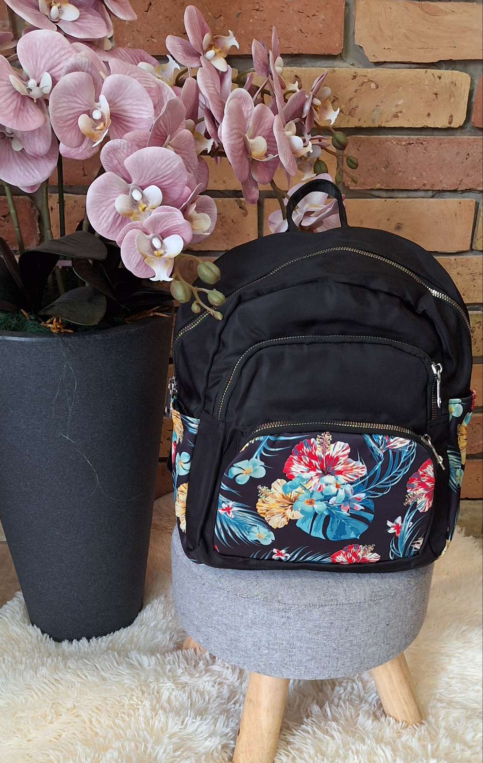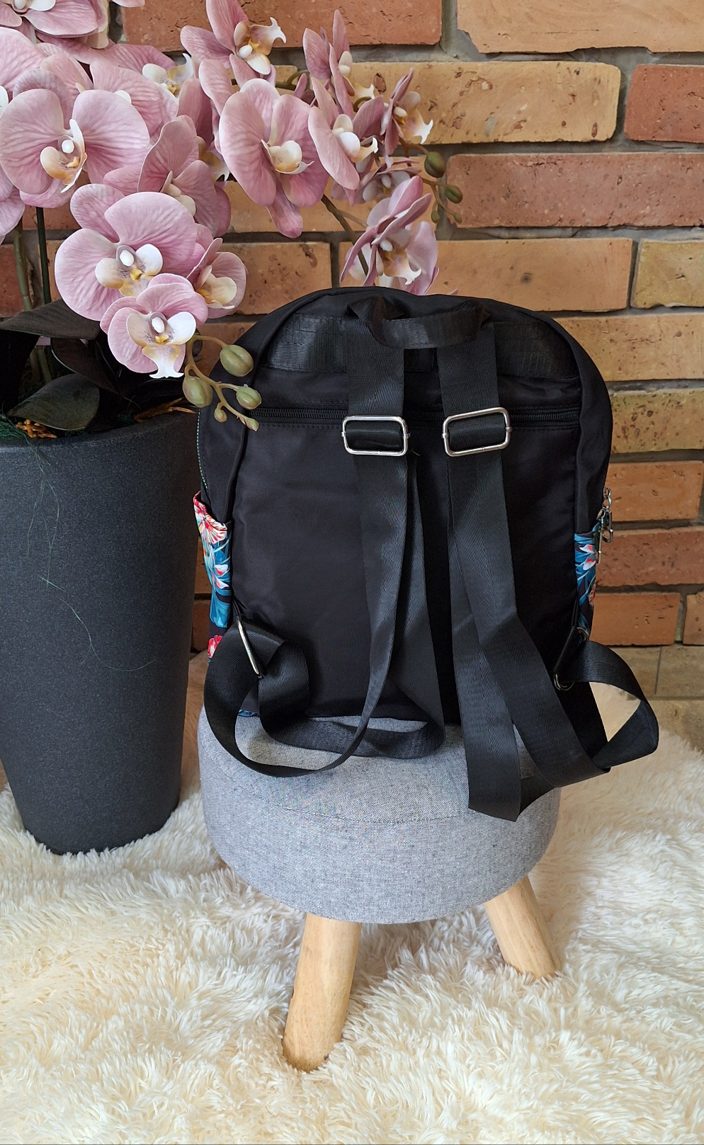 Fekete, virág mintás hátizsák!